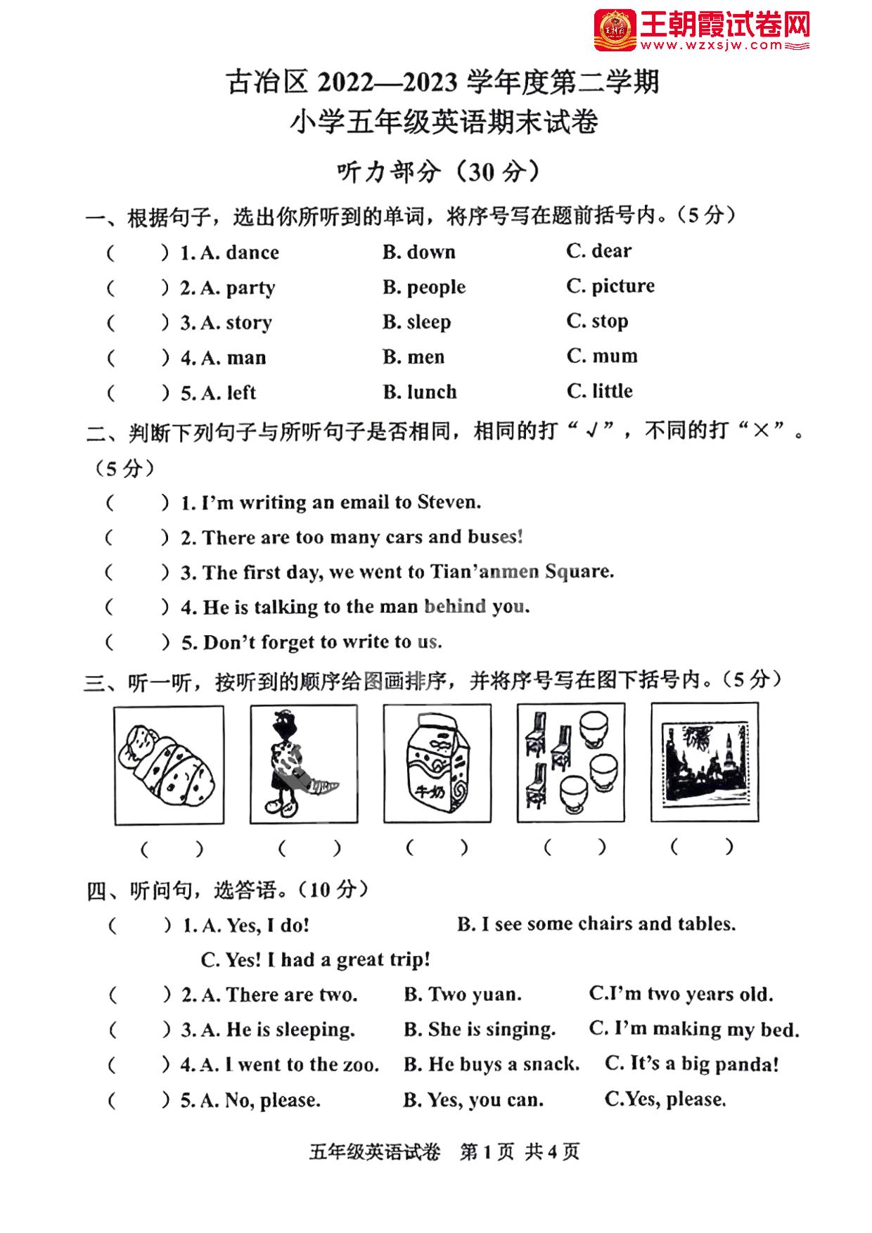 河北省唐山市古冶区2022-2023学年度第二学期期末试卷五年级英语(冀教版)【无听力音频】