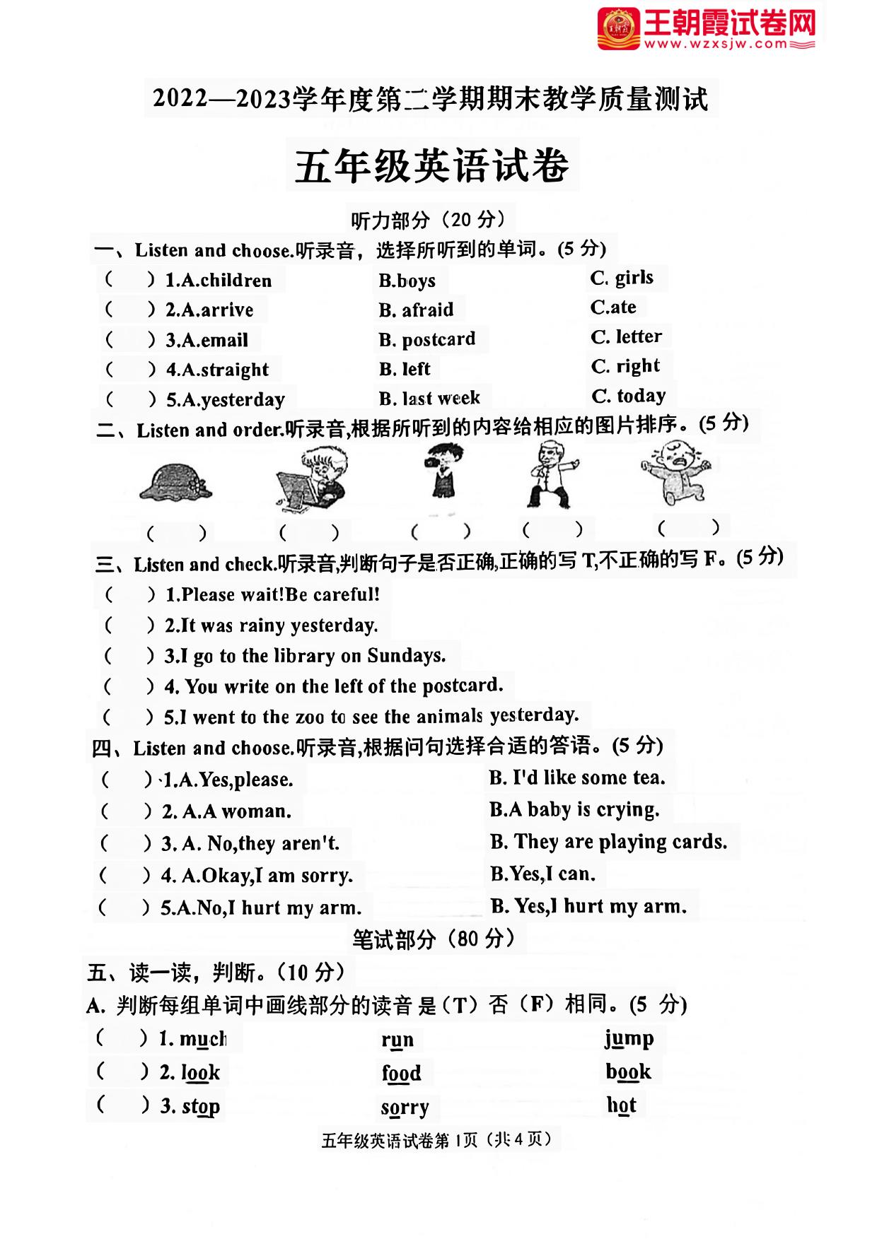 河北省邯郸市临漳县2022-2023学年度第二学期期末教学质量测试卷五年级英语(冀教版)