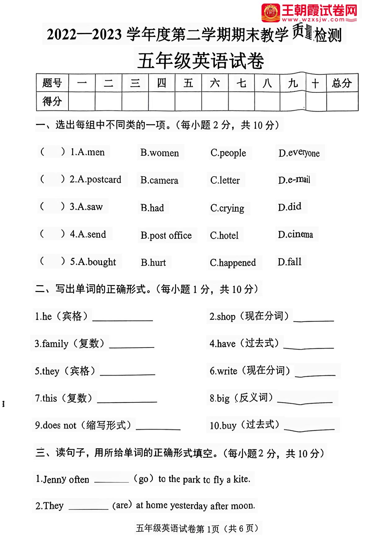 河北省邯郸市广平县2022-2023学年度第二学期期末期末教学质量检测试卷五年级英语(冀教版)