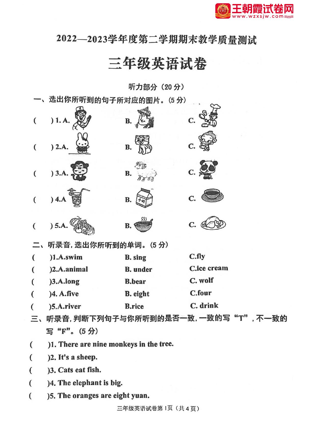 河北省邯郸市临漳县2022-2023学年度第二学期期末教学质量测试卷三年级英语(冀教版)