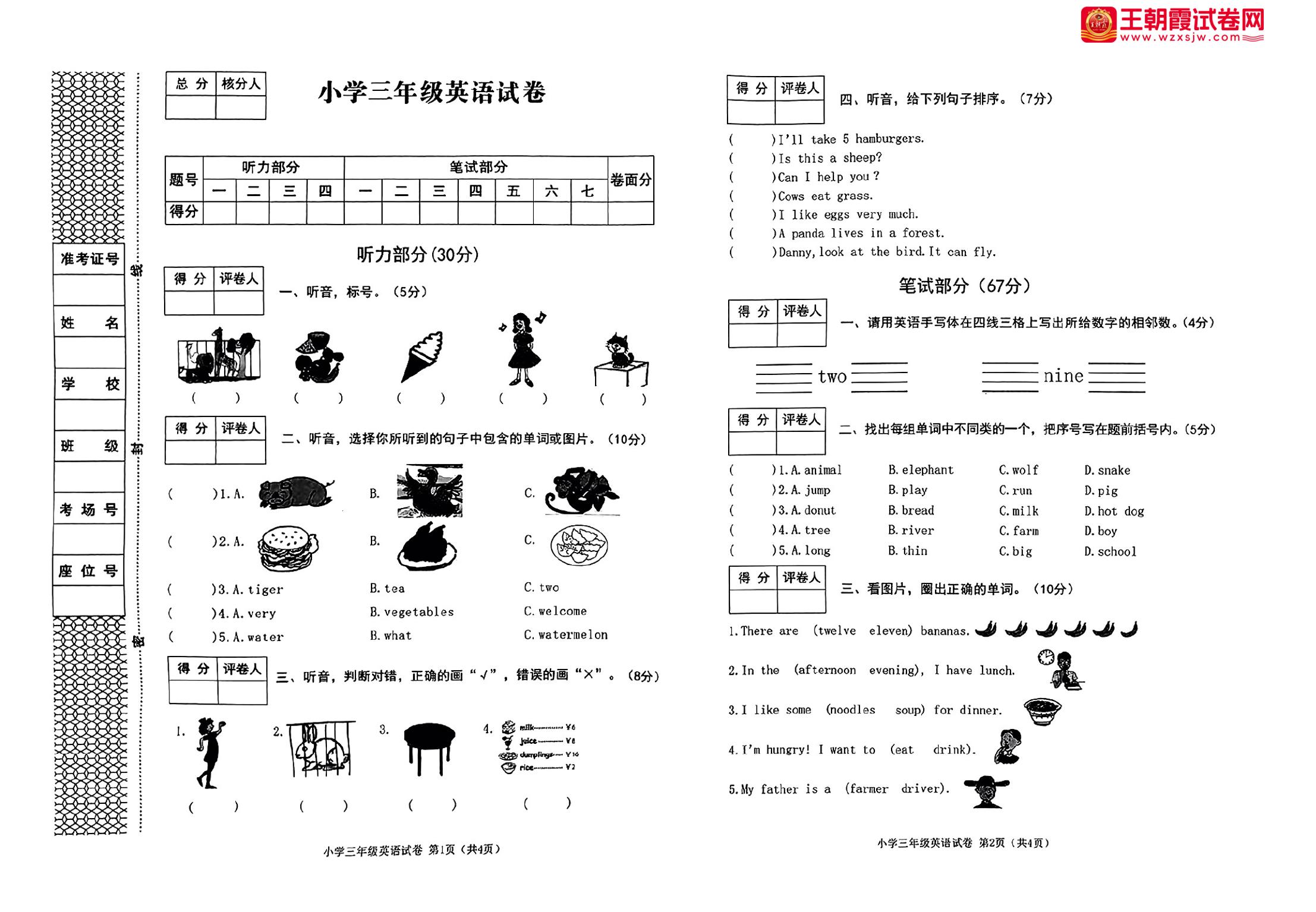 河北省张家口市怀来县2022-2023学年第二学期期末考试卷三年级英语(冀教版)