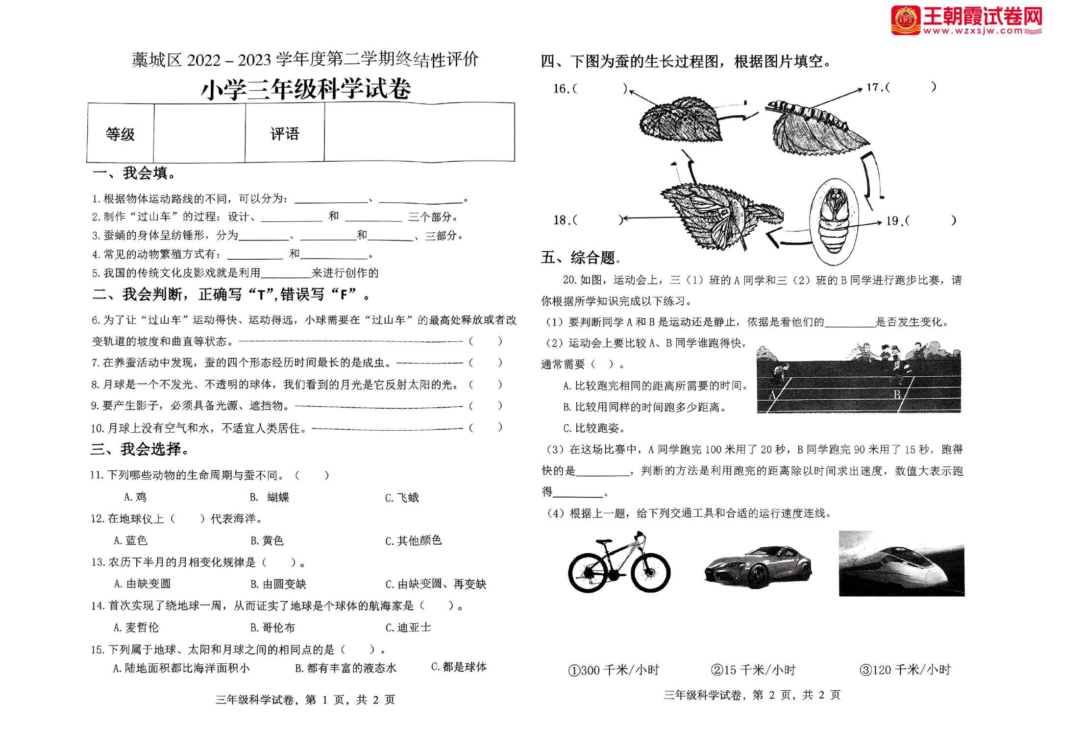 河北省石家庄市藁城区2022-2023学年度第二学期终结性评价试卷三年级科学(冀人版)