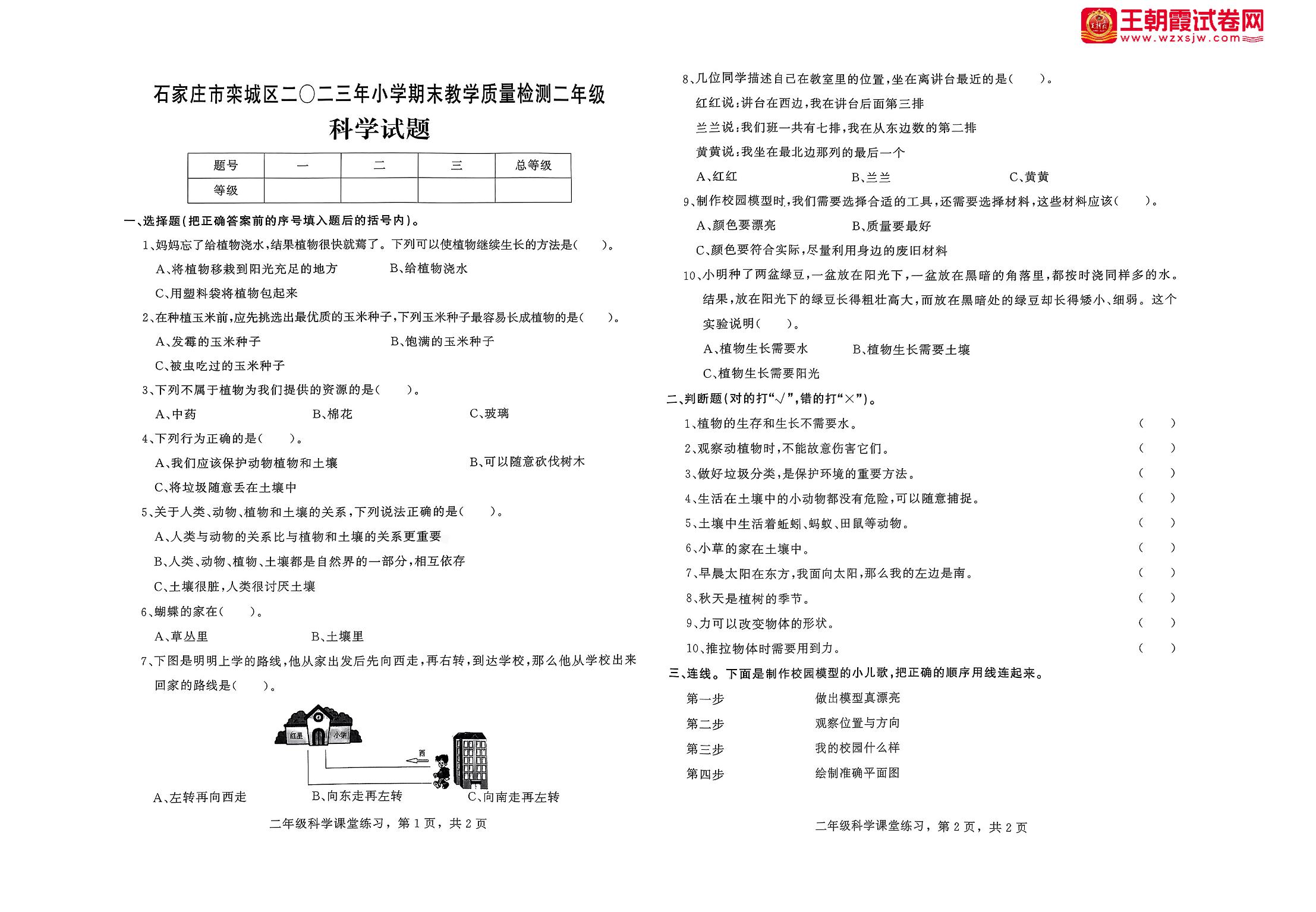 河北省石家庄市栾城区2022-2023学年第二学期期末教学质量检测试题二年级科学(冀人版)