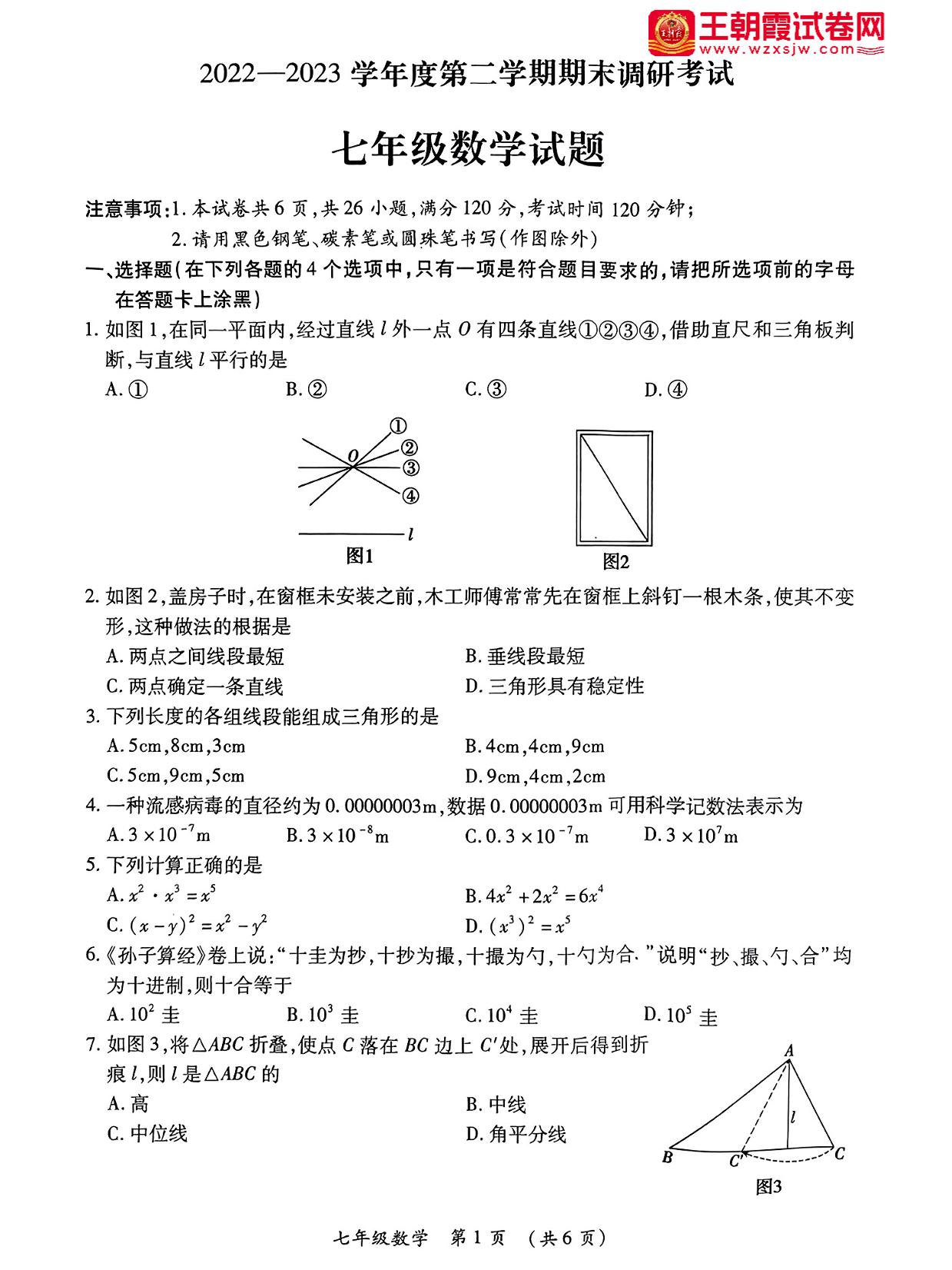 河北省保定市清苑区2022-2023学年度第二学期期末调研考试试题七年级数学(北师版)