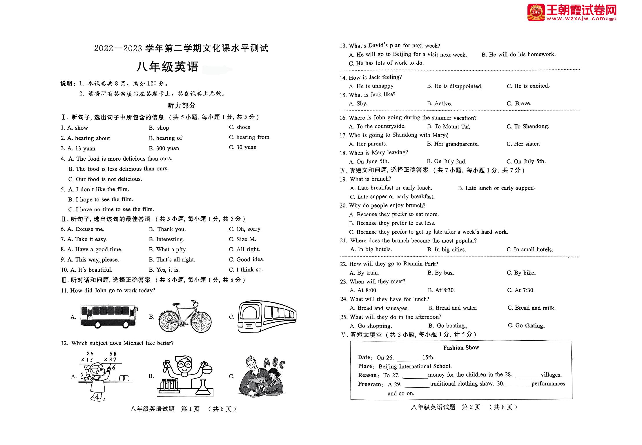 河北省邢台市信都区2022-2023学年第二学期期末文化课水平测试卷八年级英语(新课标版)【无听力音频】