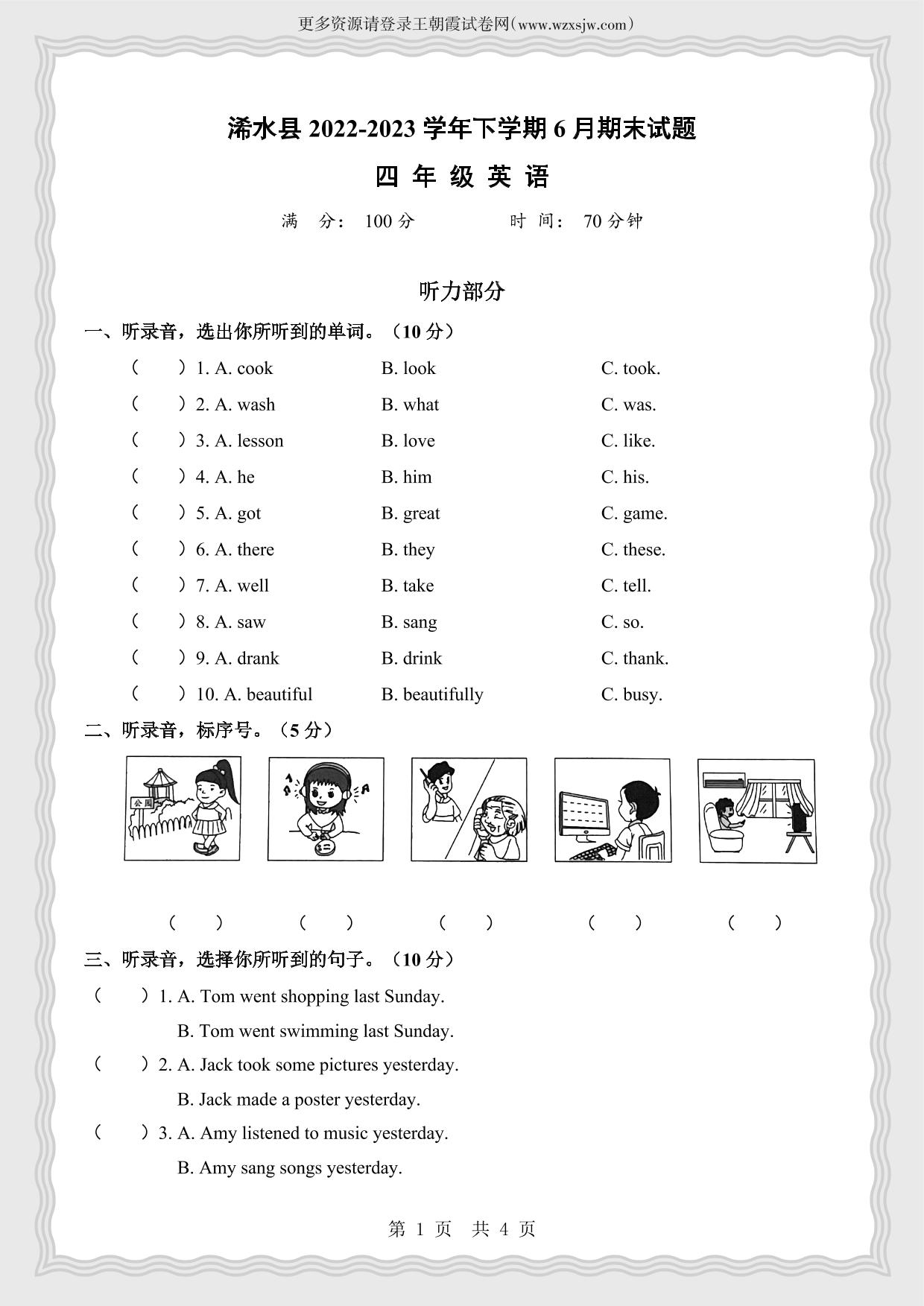 湖北省黄冈市浠水县2022-2023学年下学期6月期末试题四年级英语(外研版)【无听力音频】