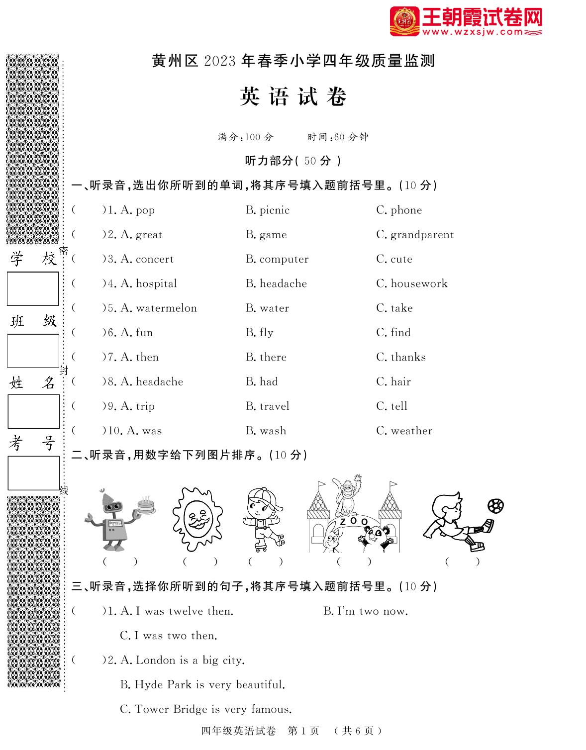 湖北省黄冈市黄州区2022-2023学年下学期期末质量监测试题四年级英语外研版(三年级起点)【无听力音频】