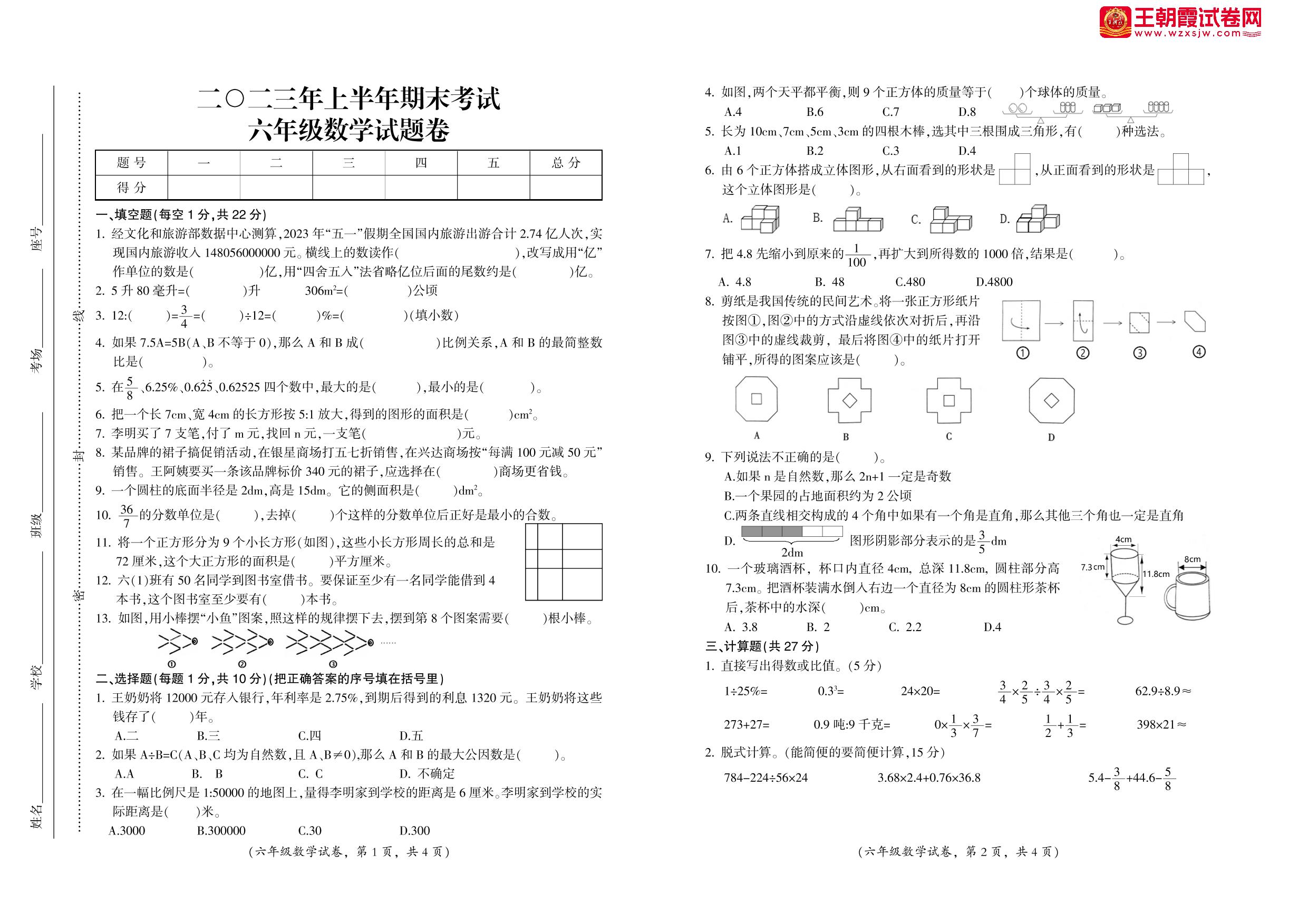 江西省吉安市遂川县2022-2023学年度第二学期期末考试试卷六年级数学(人教版)