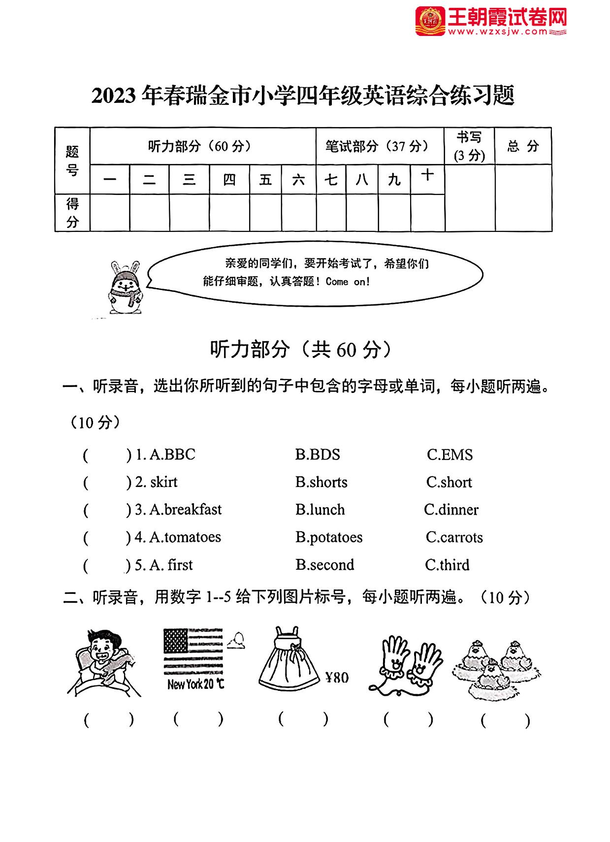 江西省赣州市瑞金市2022-2023学年度第二学期期末综合练习题四年级英语(人教PEP版)【无听力音频】