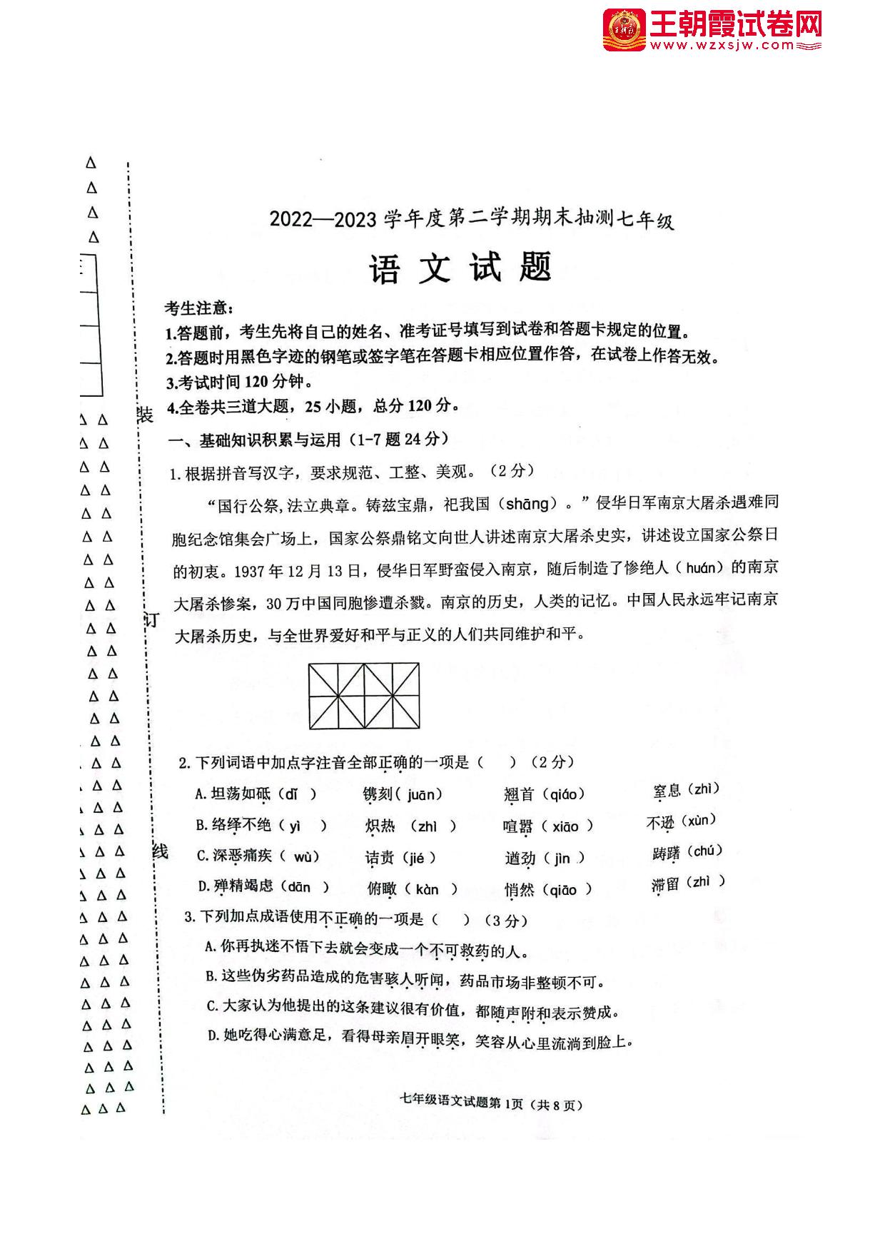 七年级语文人教版下册期末卷