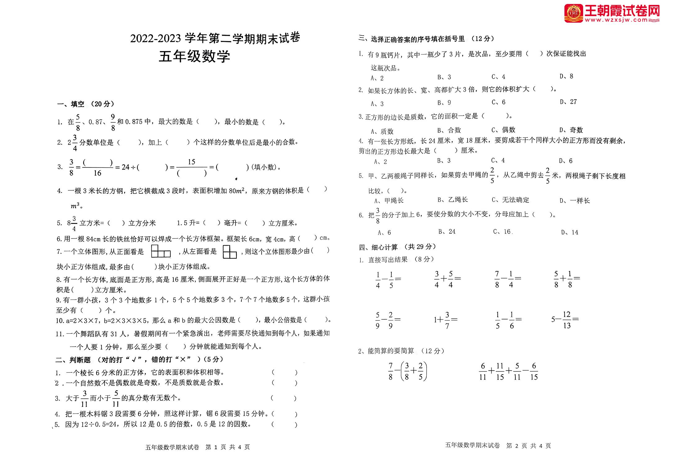 江西省宜春市丰城市2022-2023学年度第二学期期末试卷五年级数学(人教版)