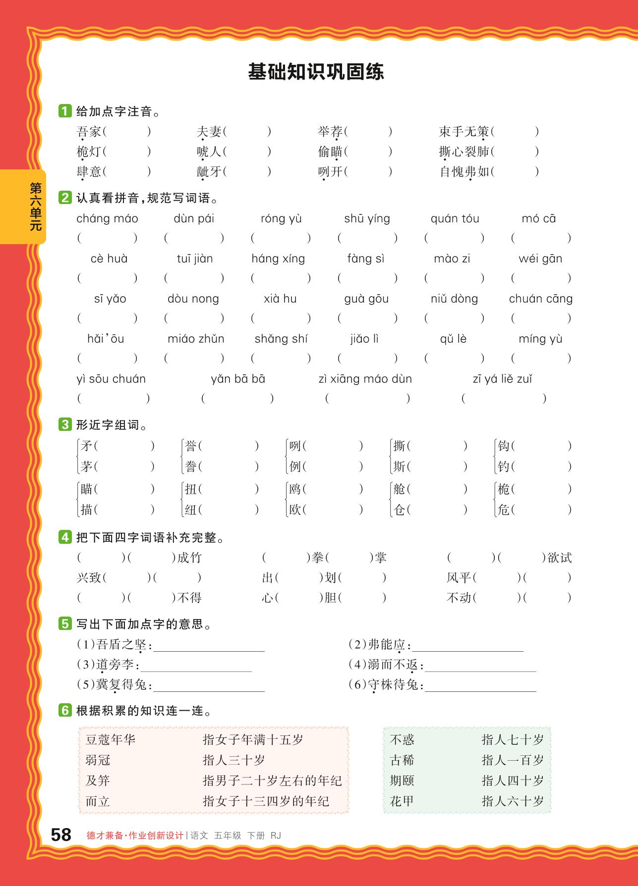 2024春下册五年级语文人教版 第六单元 思维的火花——基础知识巩固练