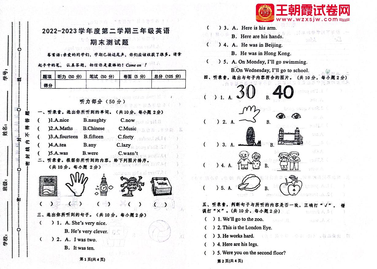 山东省聊城市东昌府区2022-2023学年度第二学期期末测试题三年级英语(外研版)【无听力音频】
