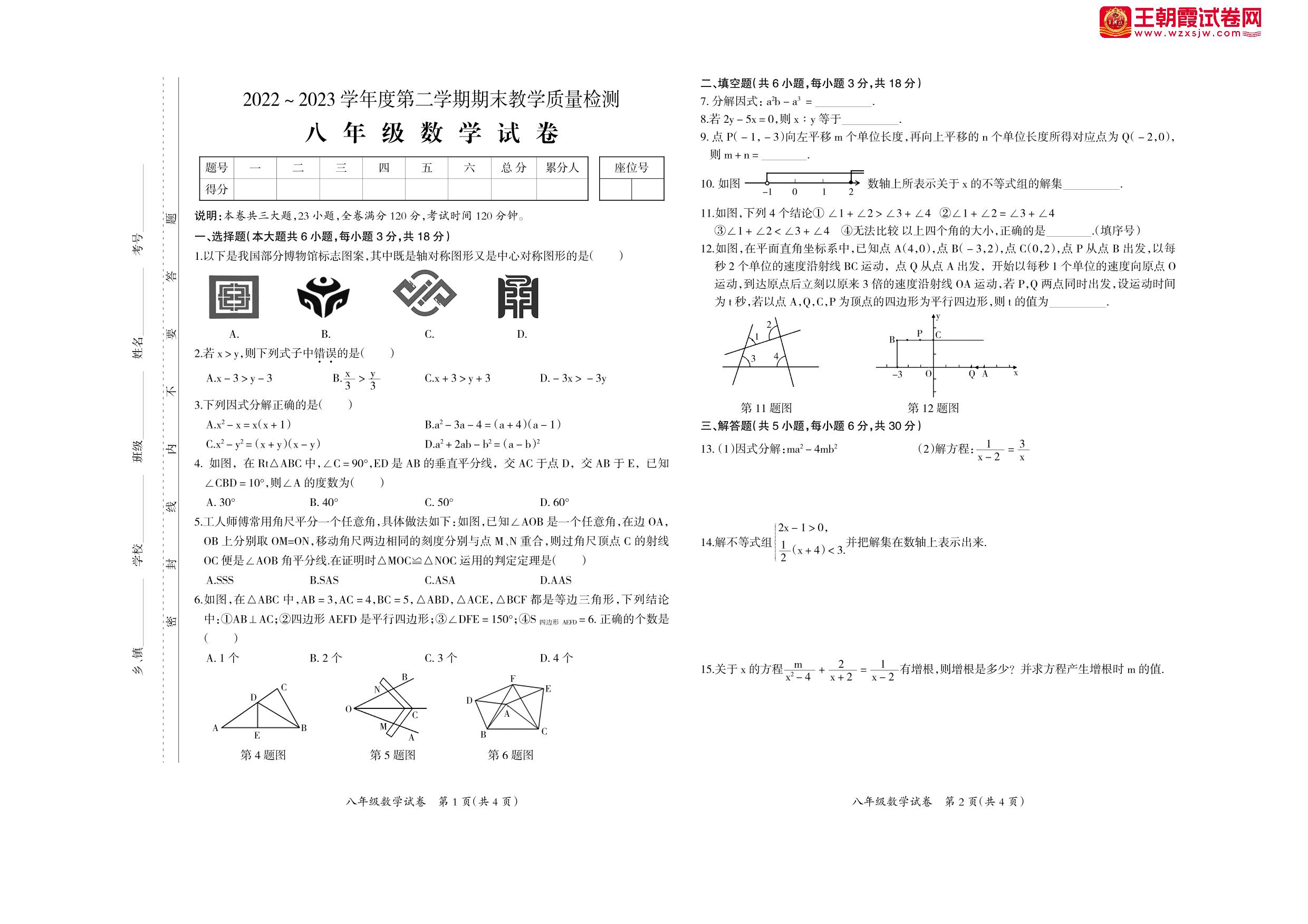 江西省井冈山市2022-2023学年度第二学期期末质量检测试卷八年级数学(北师版)