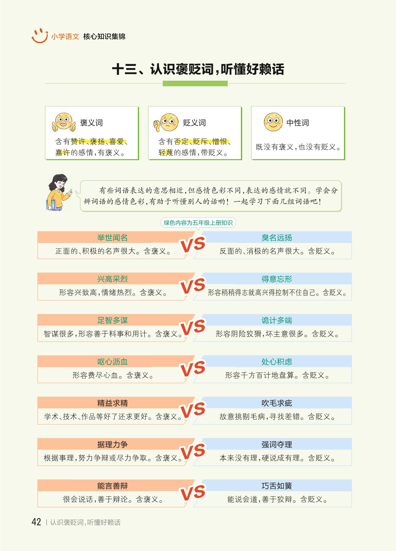 【小学语文核心知识集锦】专题三 词语总动员 十三、认识褒贬词,听懂好赖话