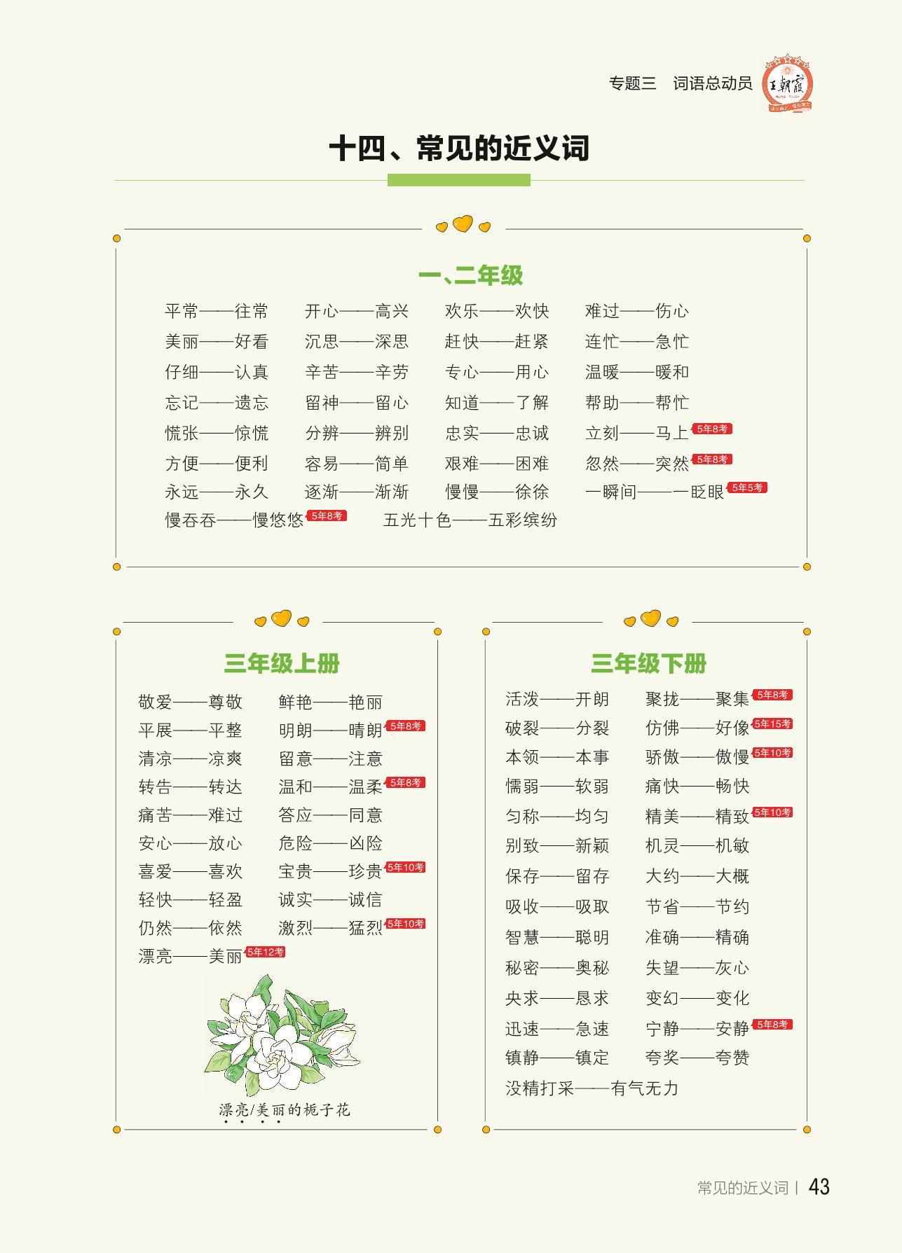 【小学语文核心知识集锦】专题三 词语总动员 十四、常见的近义词