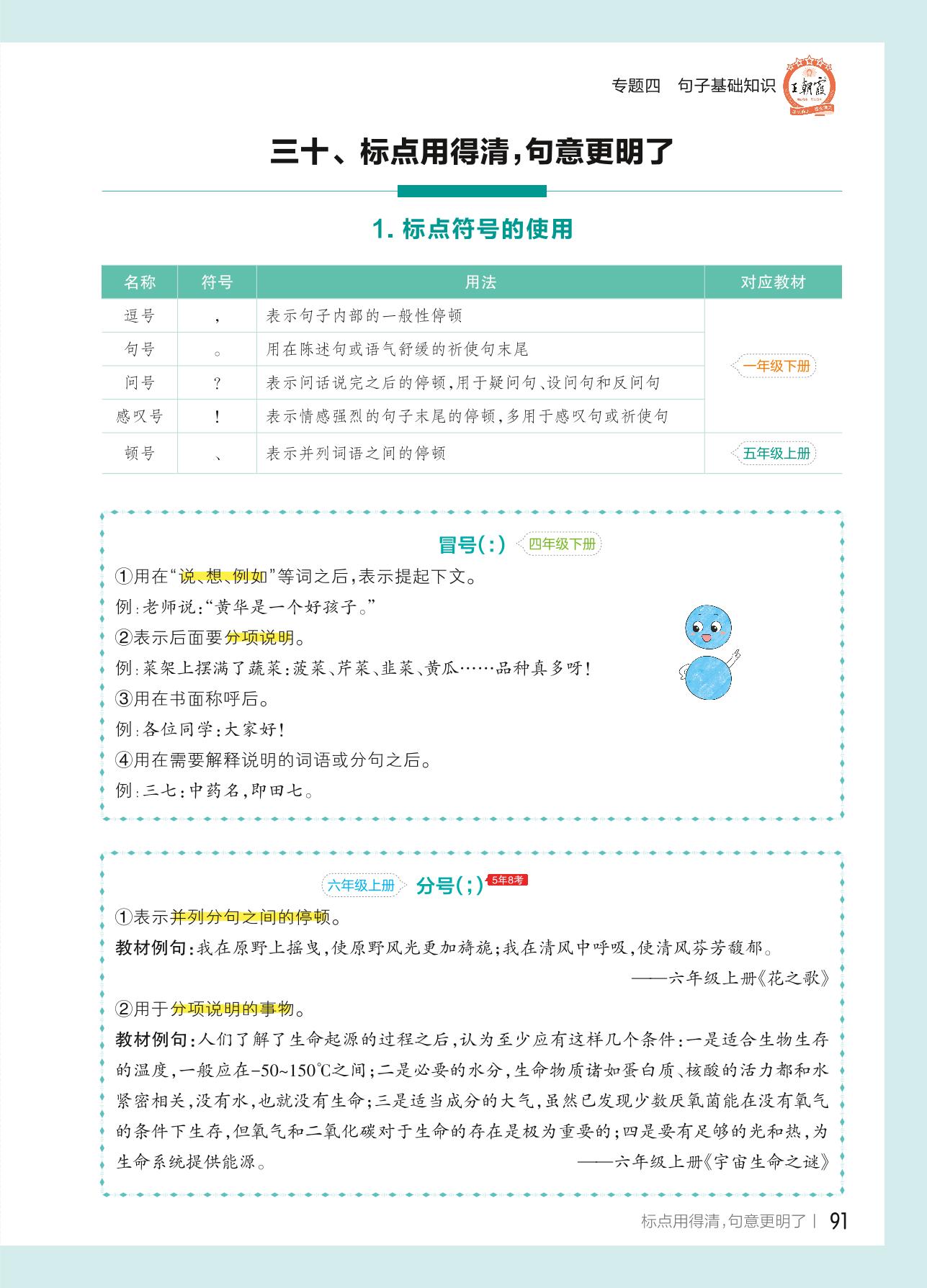 【小学语文核心知识集锦】专题四 句子基础知识 三十、标点用得清,句意更明了