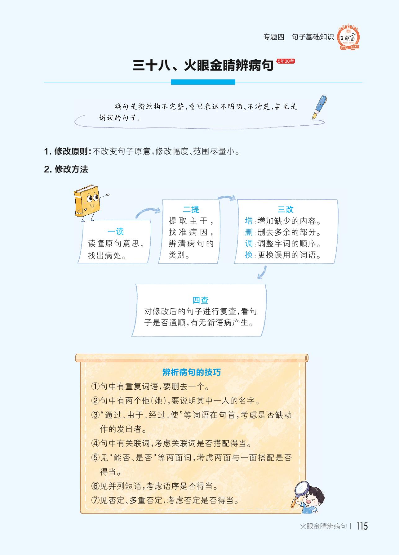 【小学语文核心知识集锦】专题四 句子基础知识 三十八、火眼金睛辨病句