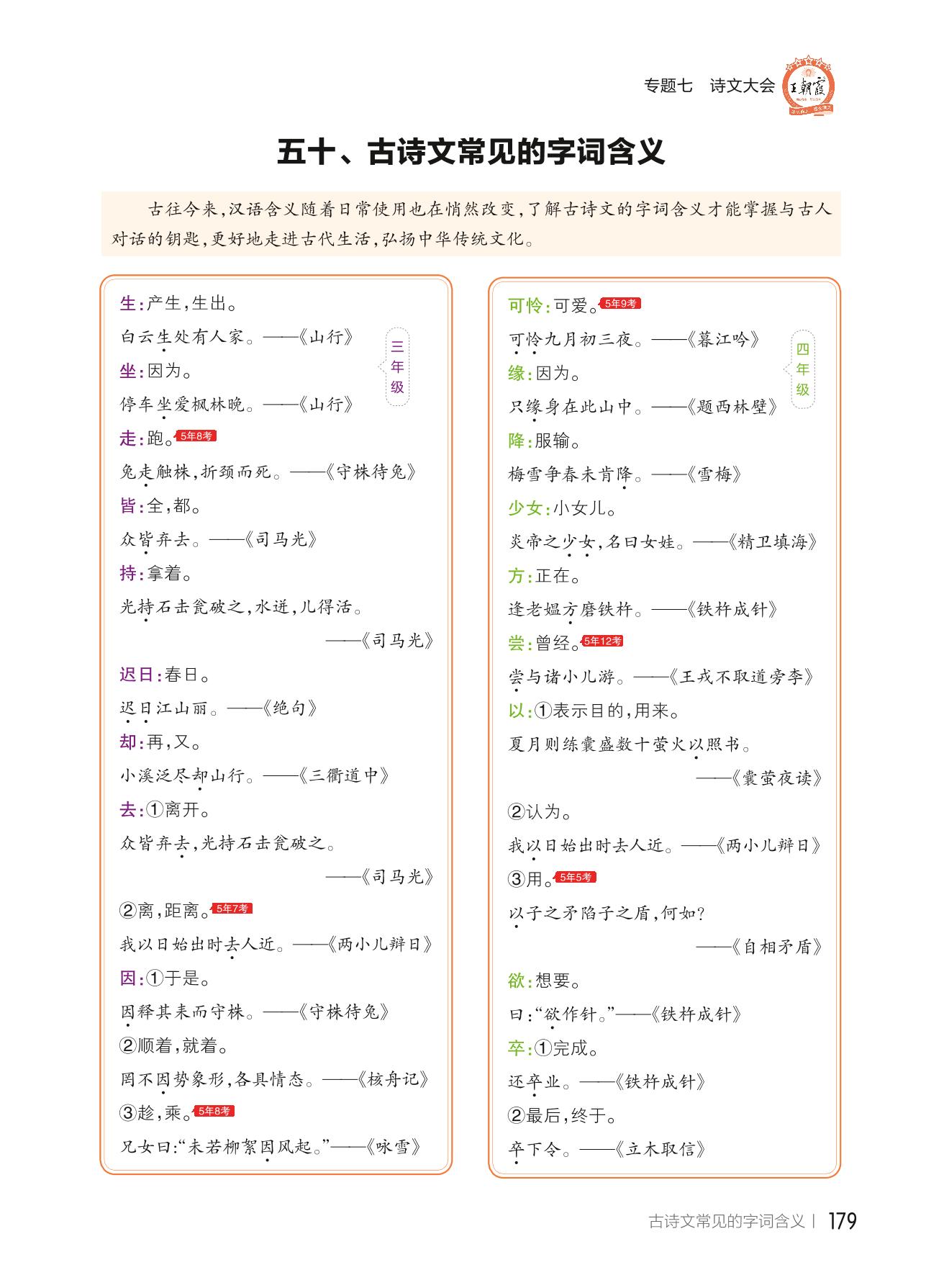 【小学语文核心知识集锦】专题七 诗文大会 五十、古诗文常见的字词含义
