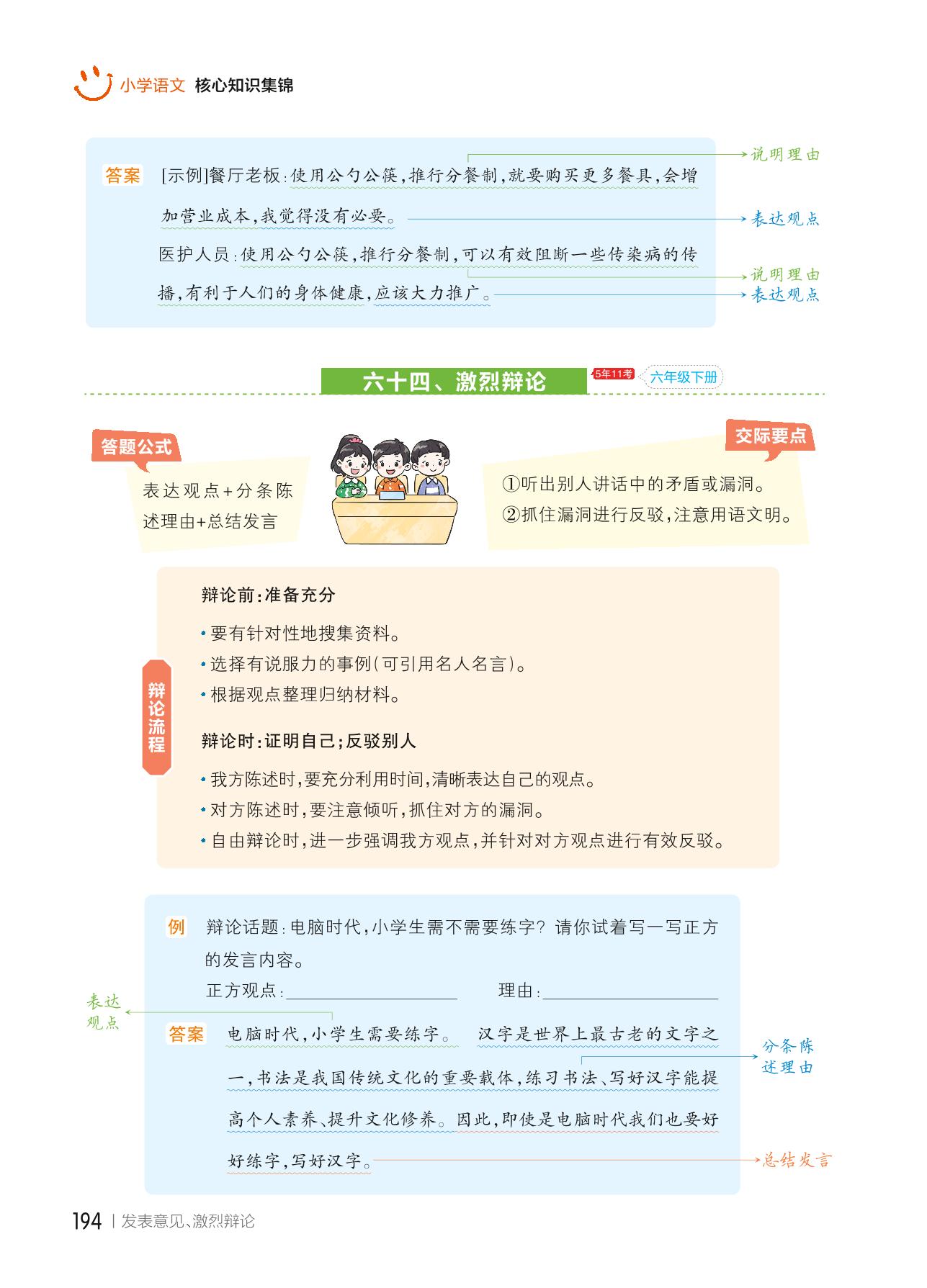 【小学语文核心知识集锦】专题八 交际小课堂 六十四、激烈辩论