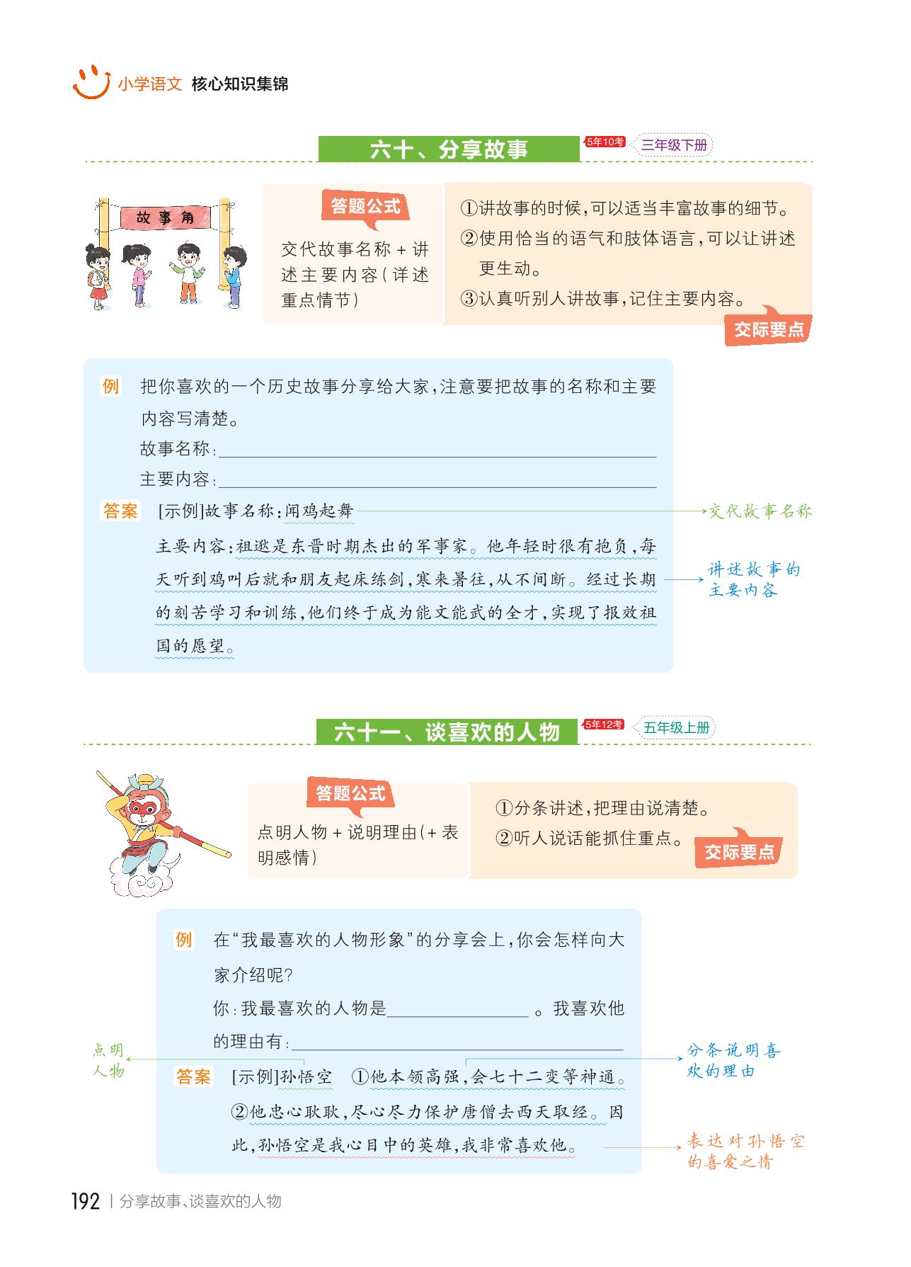 【小学语文核心知识集锦】专题八 交际小课堂 六十、分享故事&六十一、谈喜欢的人物