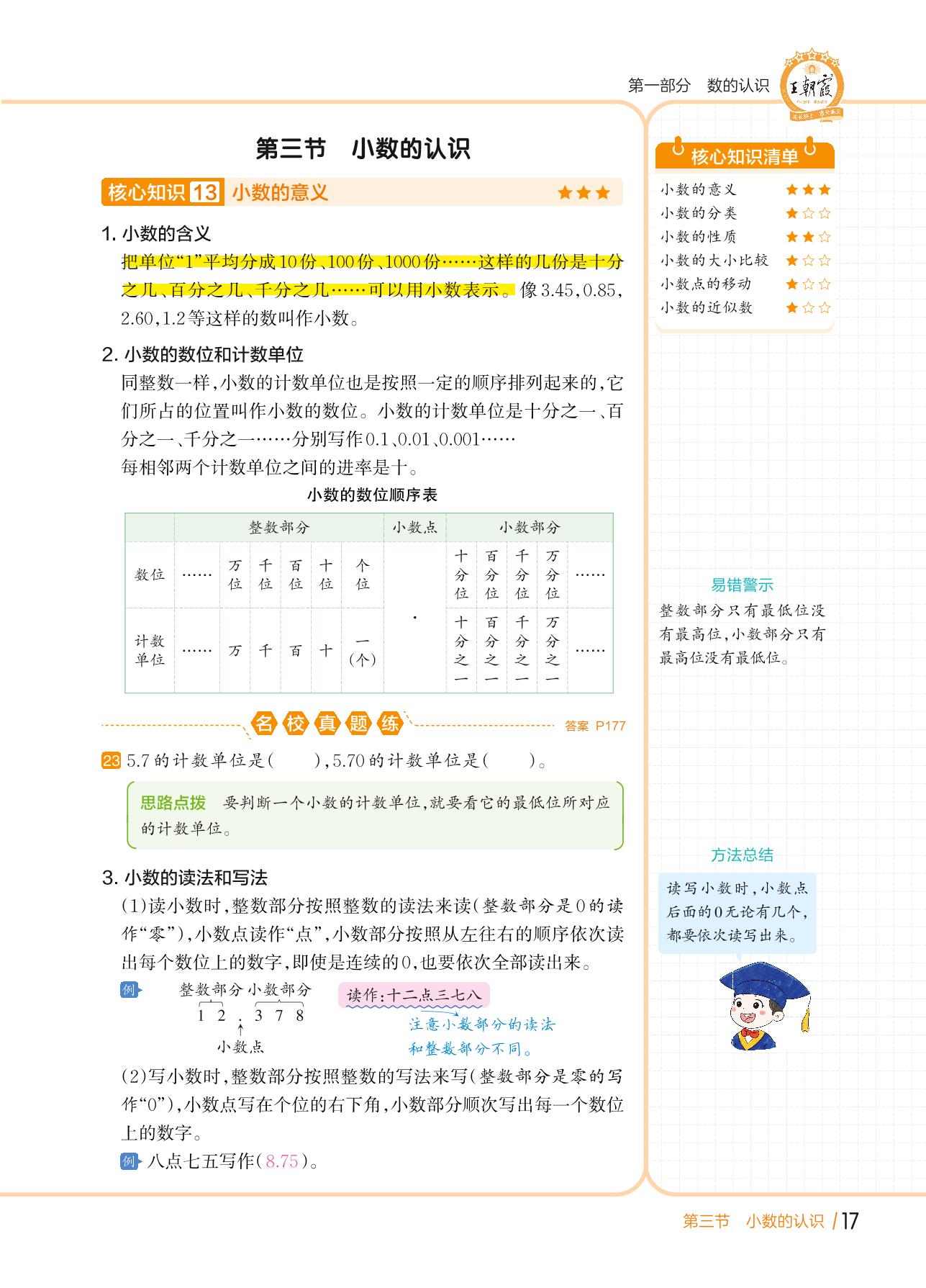 【小学数学核心知识集锦】第一部分 数的认识 第三节:小数的认识