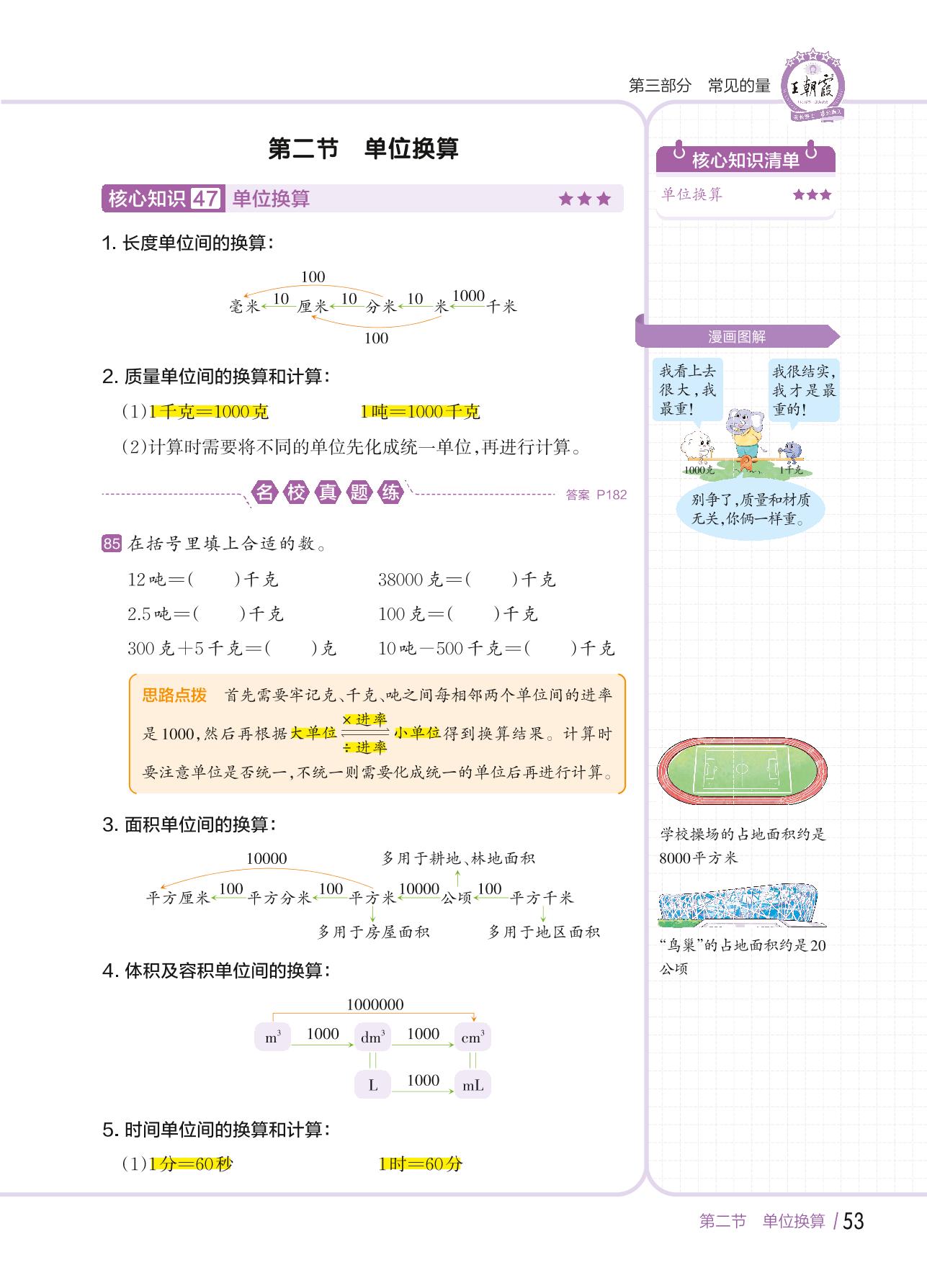 【小学数学核心知识集锦】第三部分 常见的量 第二节:单位换算