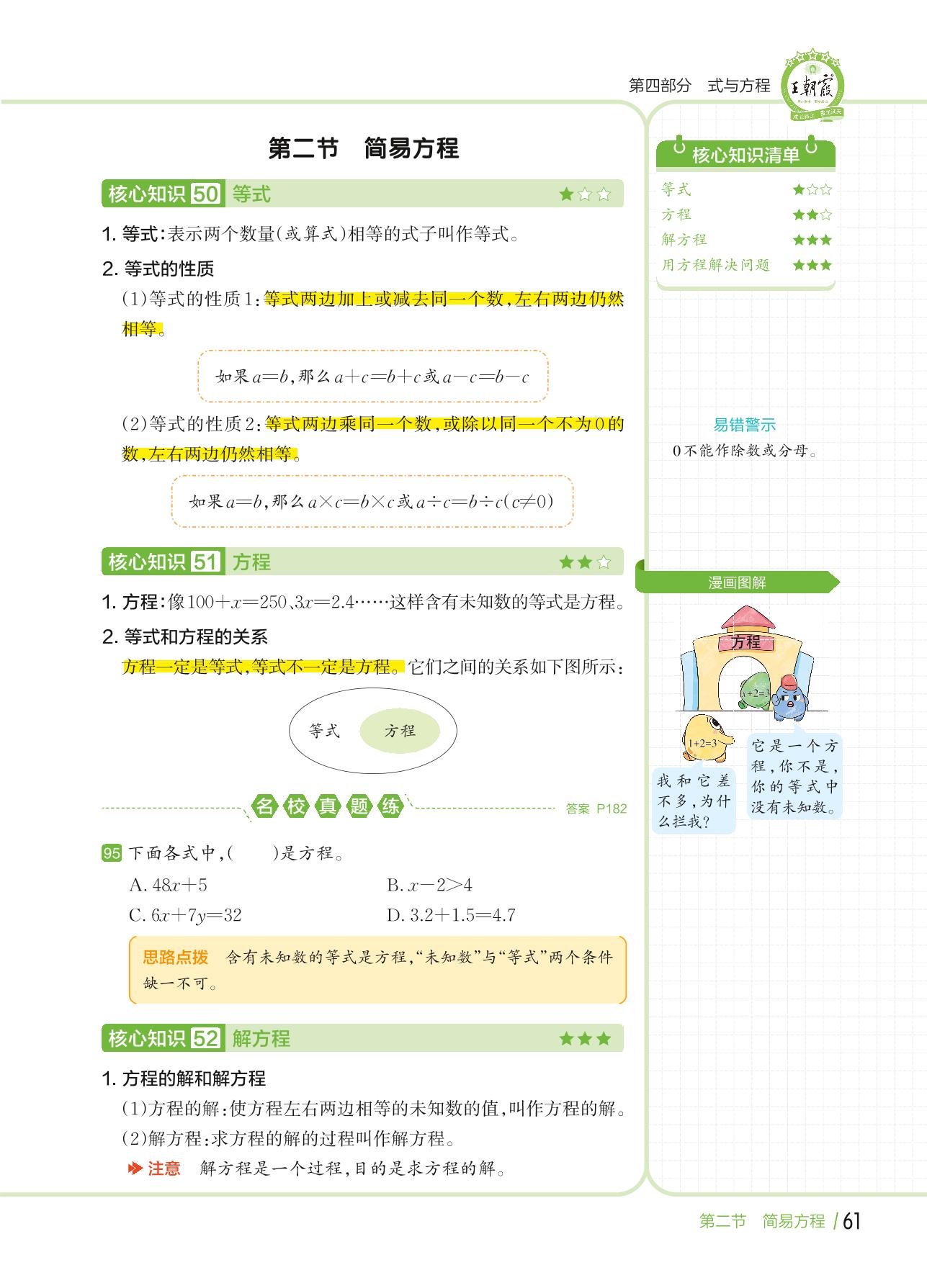 【小学数学核心知识集锦】第四部分 式与方程 第二节:简易方程