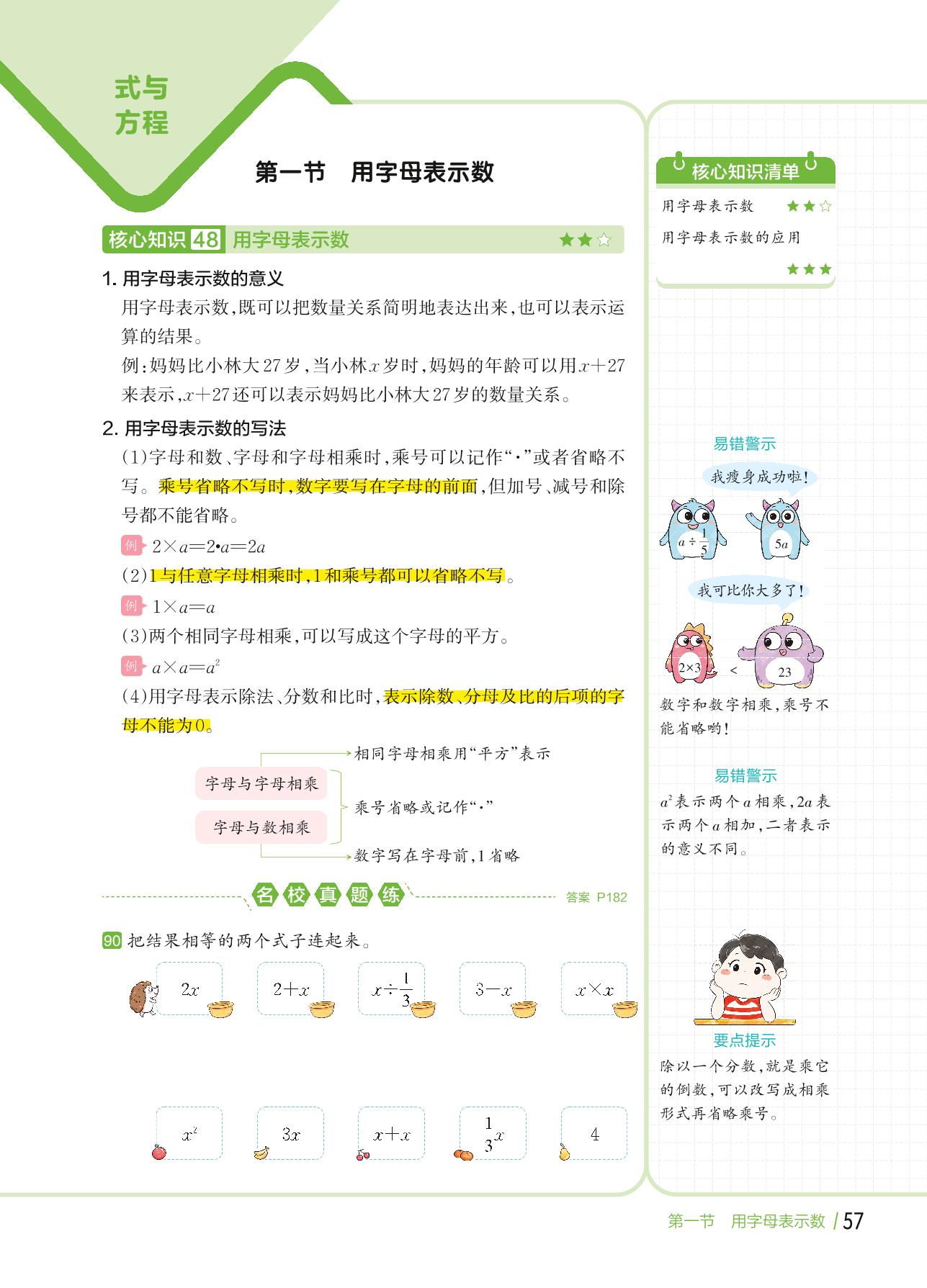 【小学数学核心知识集锦】第四部分 式与方程 第一节:用字母表示数
