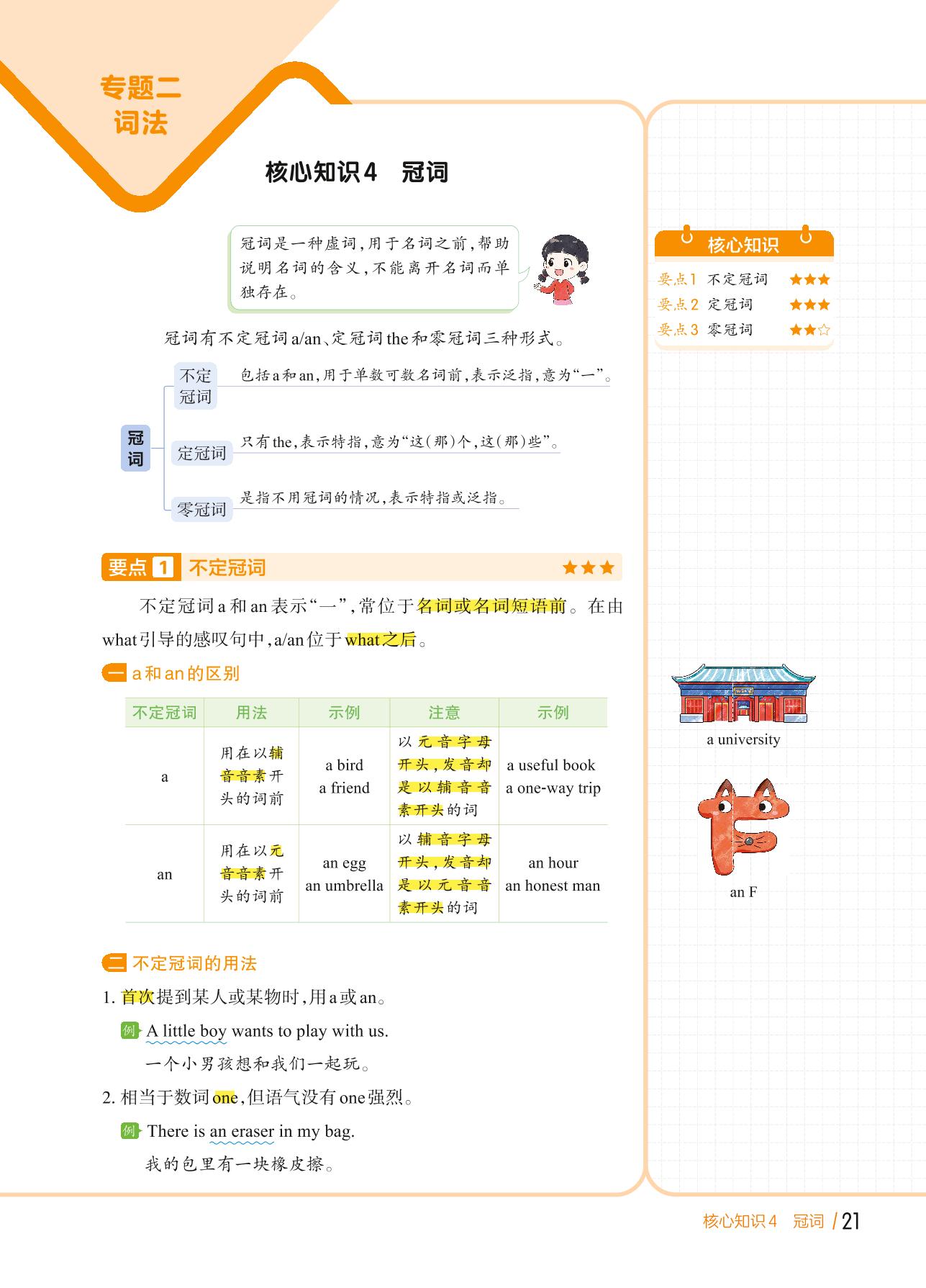 【小学英语核心知识集锦】专题二 词法 核心知识4:冠词