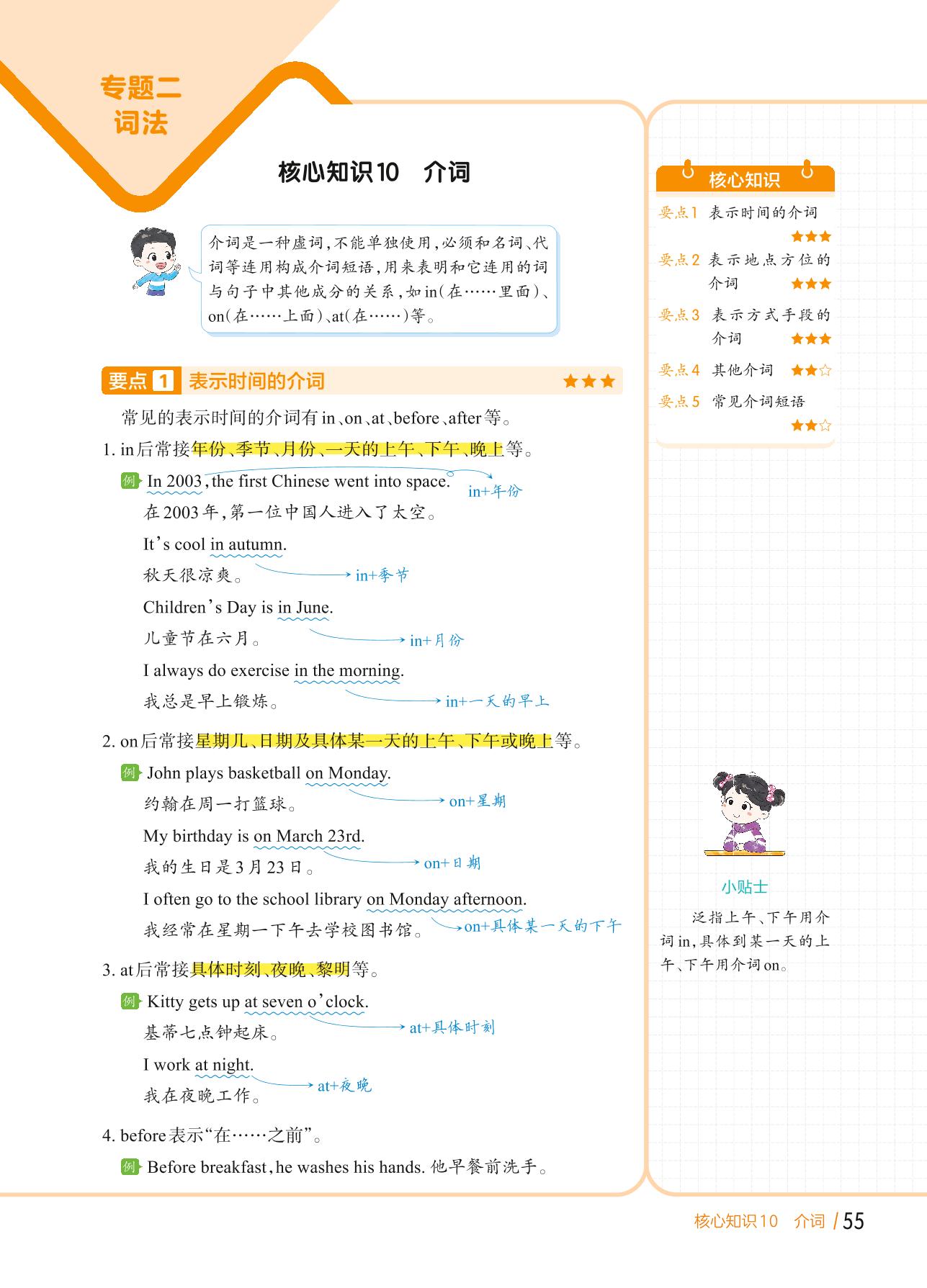 【小学英语核心知识集锦】专题二 词法 核心知识10:介词