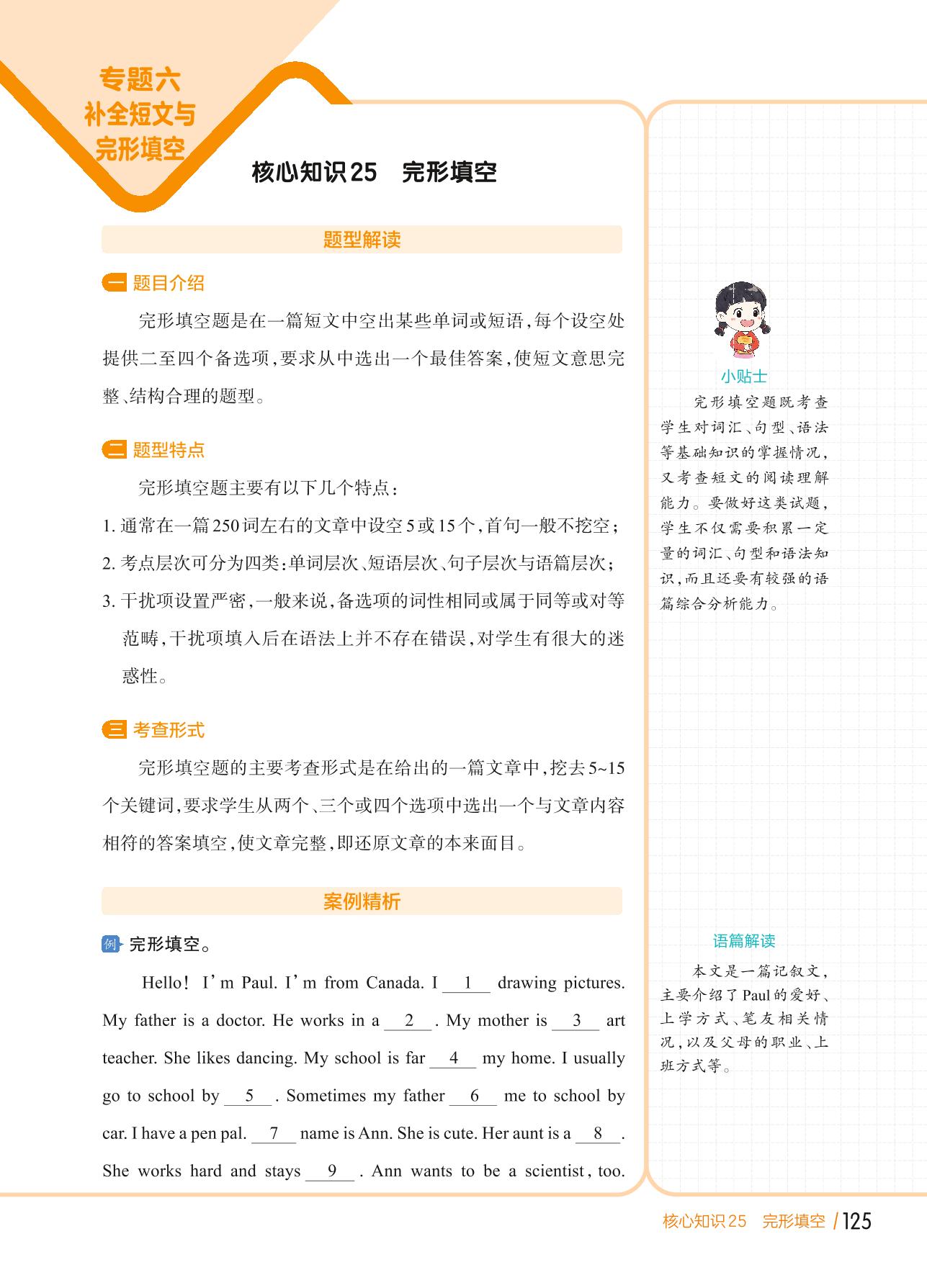 【小学英语核心知识集锦】专题六 补全短文与完形填空 核心知识25:完形填空