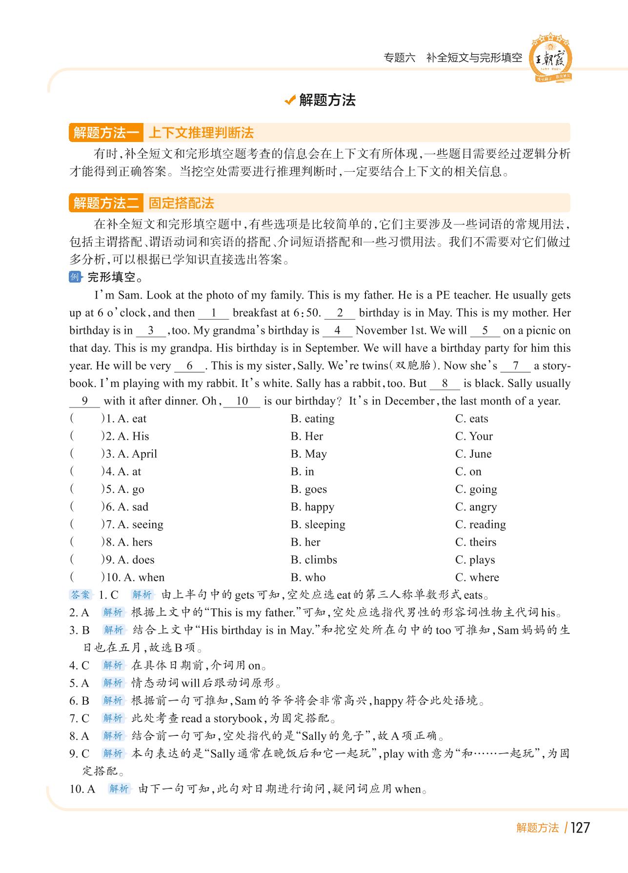 【小学英语核心知识集锦】专题六 补全短文与完形填空 解题方法