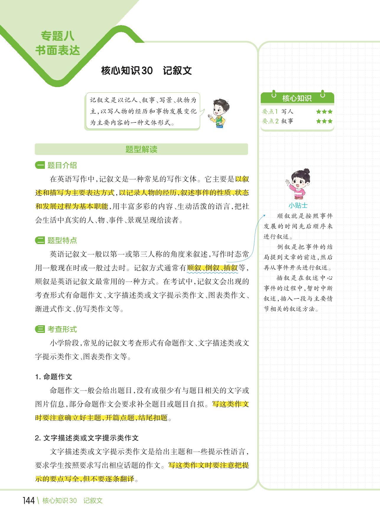 【小学英语核心知识集锦】专题八 书面表达 核心知识30:记叙文