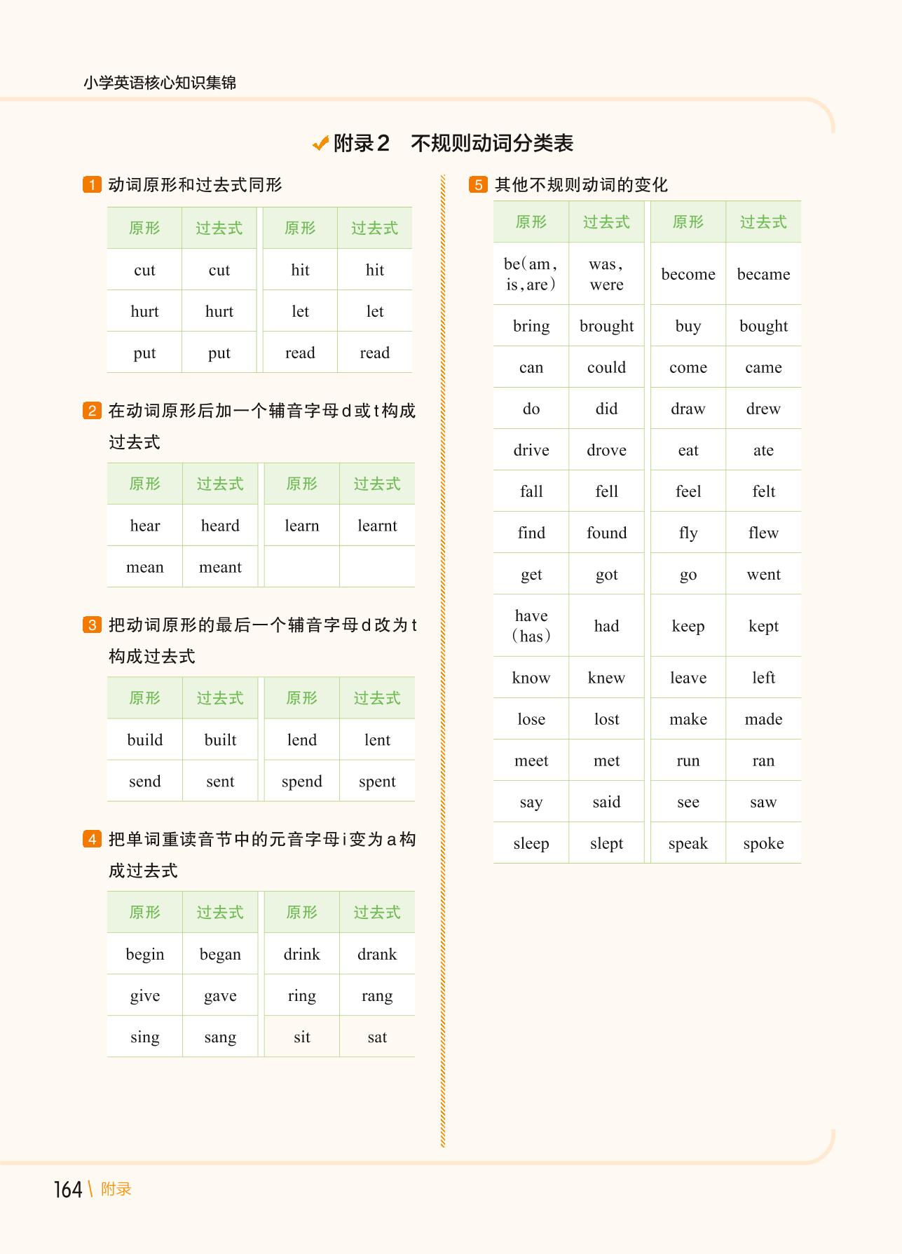 【小学英语核心知识集锦】附录2 不规则动词分类表