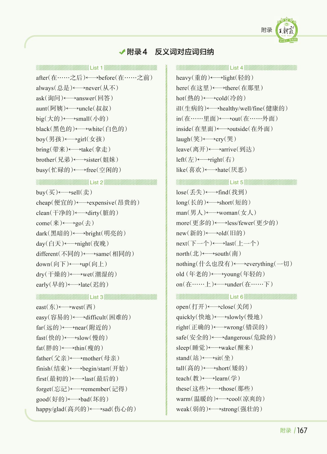 【小学英语核心知识集锦】附录4 反义词对应词归纳