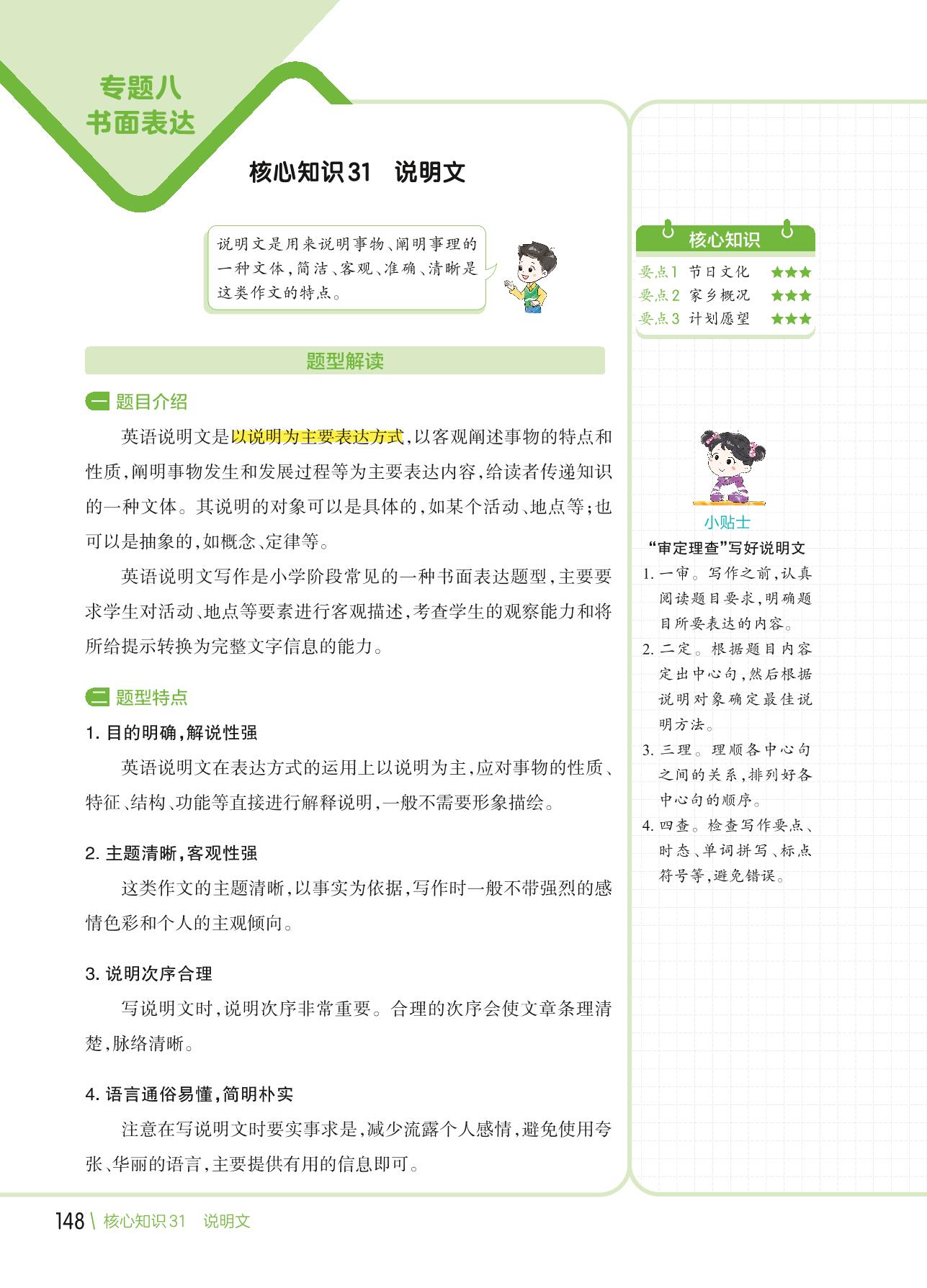 【小学英语核心知识集锦】专题八 书面表达 核心知识31:说明文