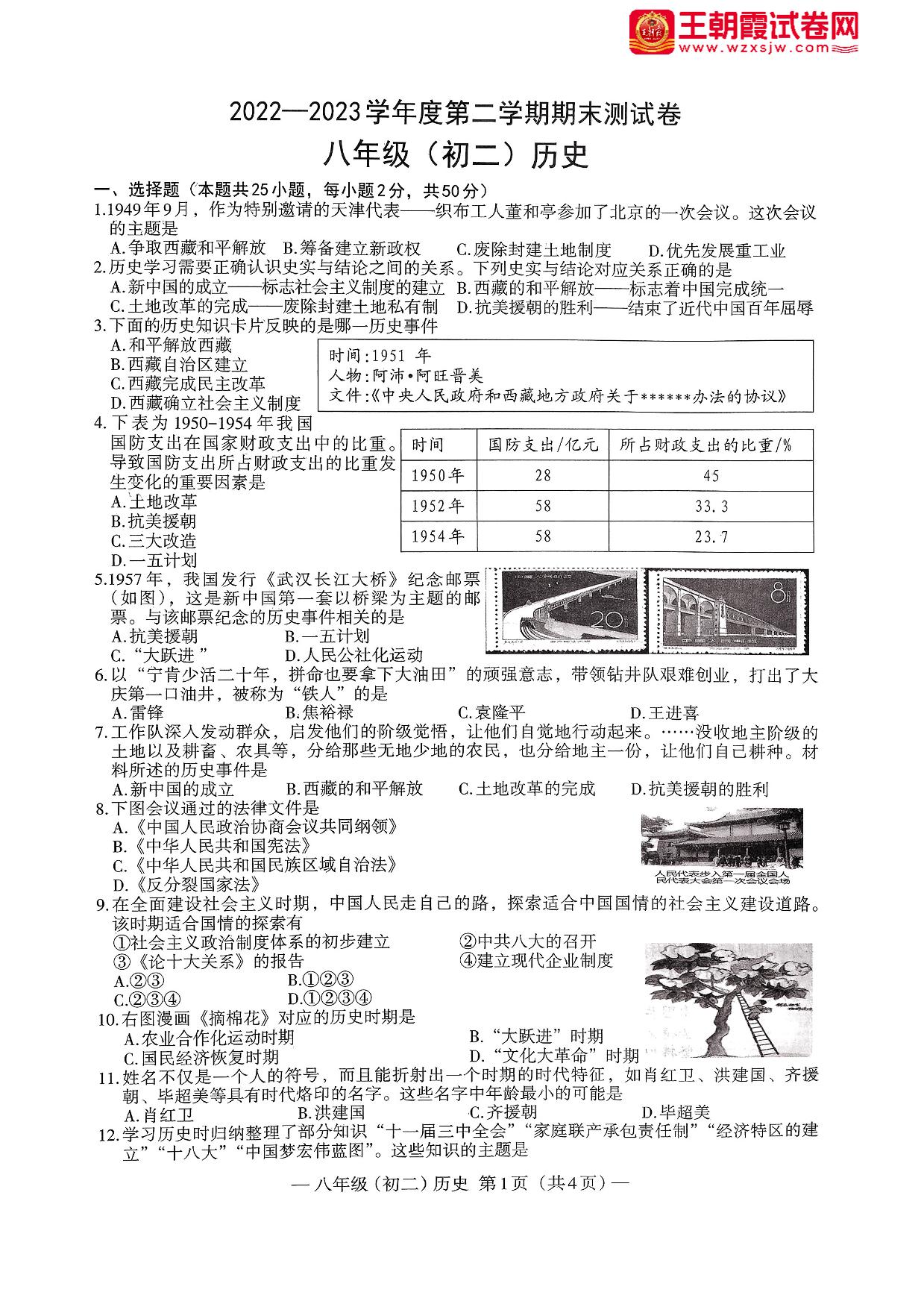 江西省南昌市2022-2023学年度第二学期期末测试卷八年级历史(人教版)