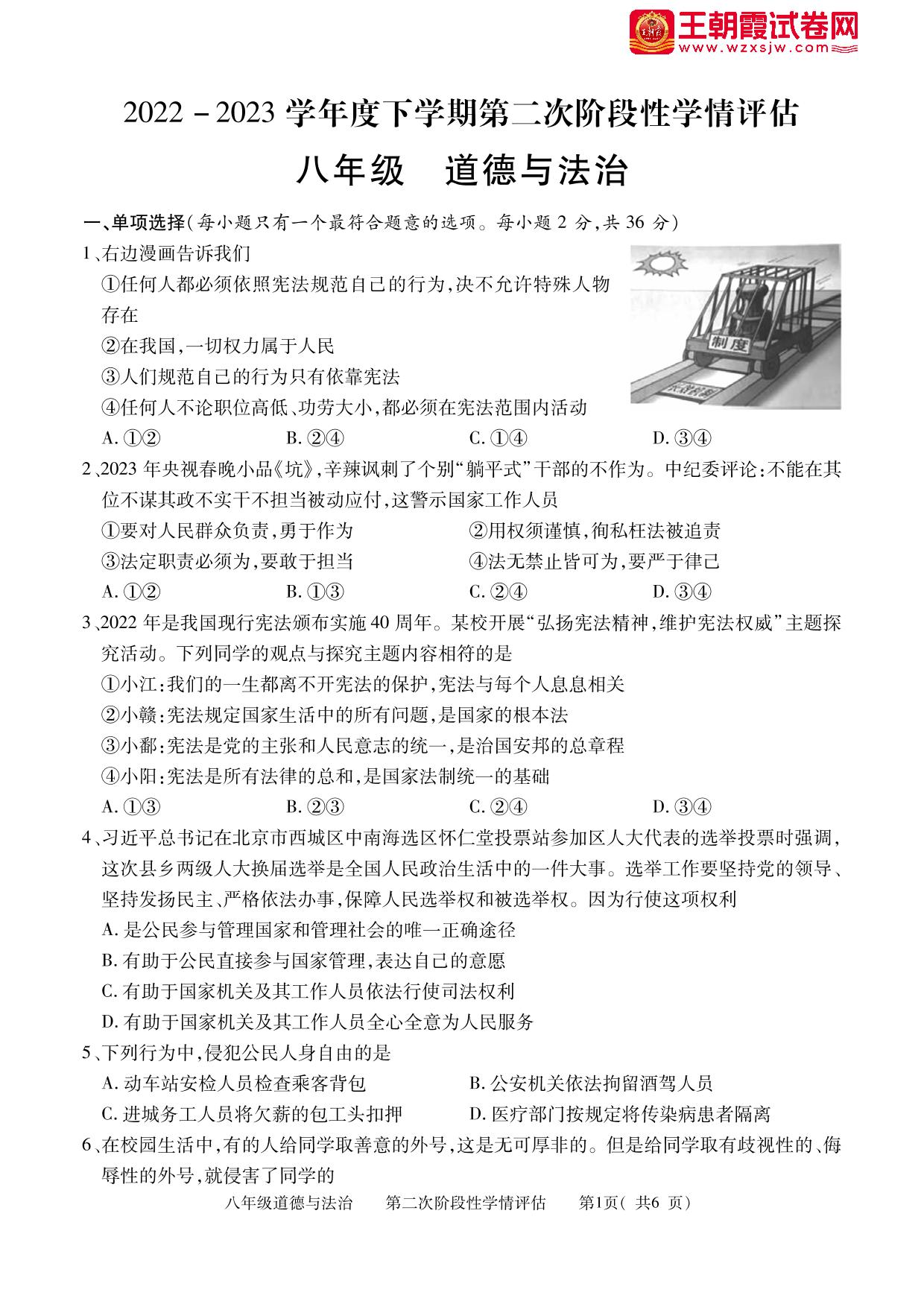 八年级道德与法治人教版下册期末卷