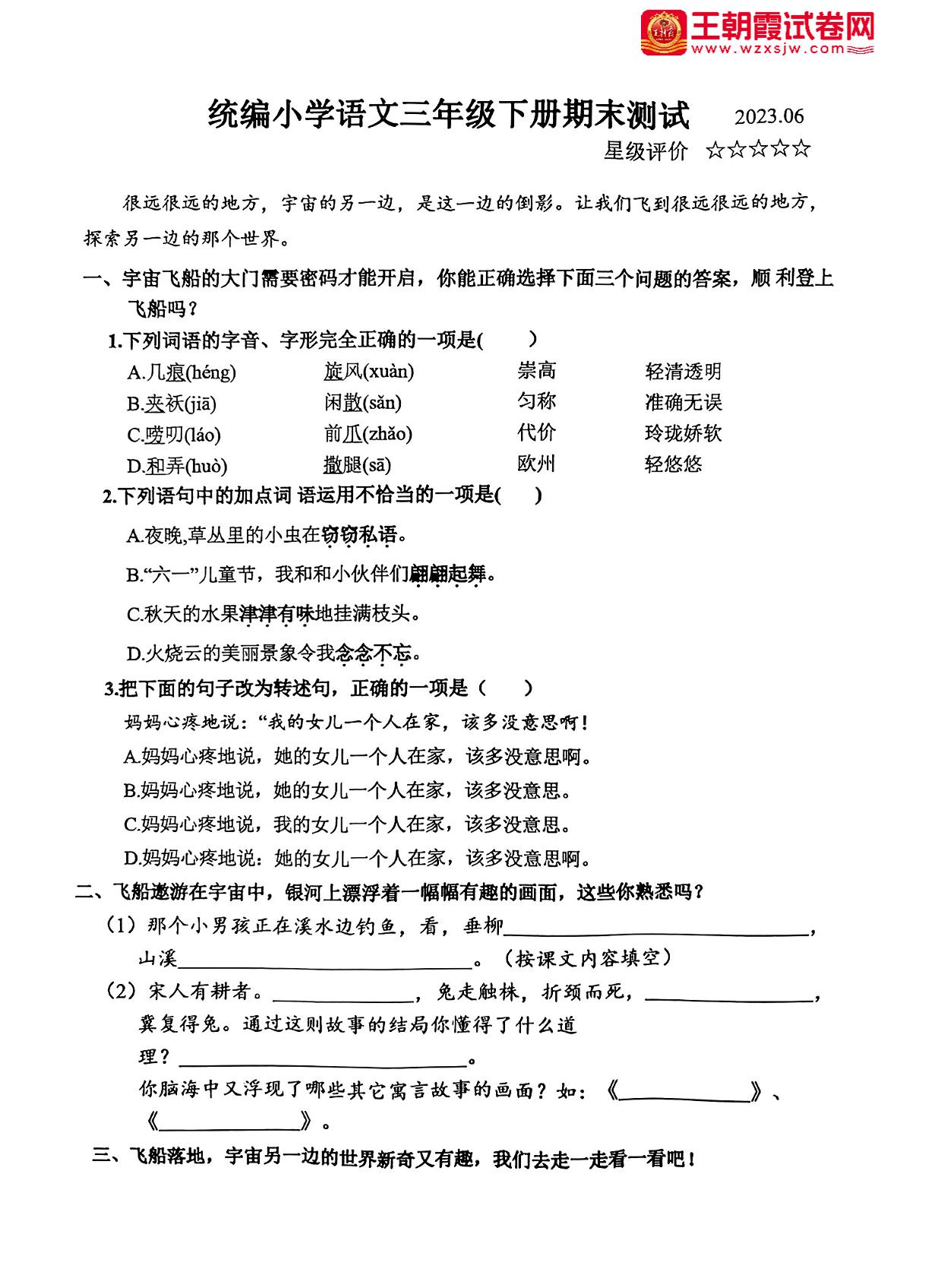 江苏省徐州市泉山区2022-2023学年下学期期末测试试卷三年级语文(人教版)