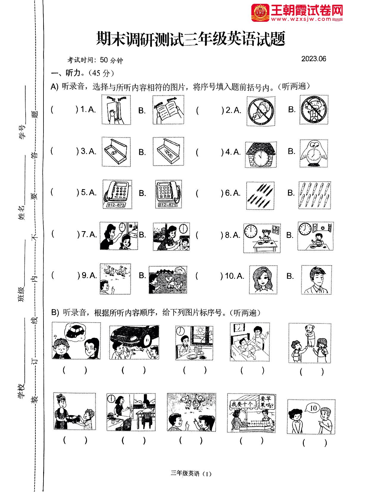 江苏省常州市溧阳市2022-203学年第一学期期末调研测试试题三年级英语(译林版)