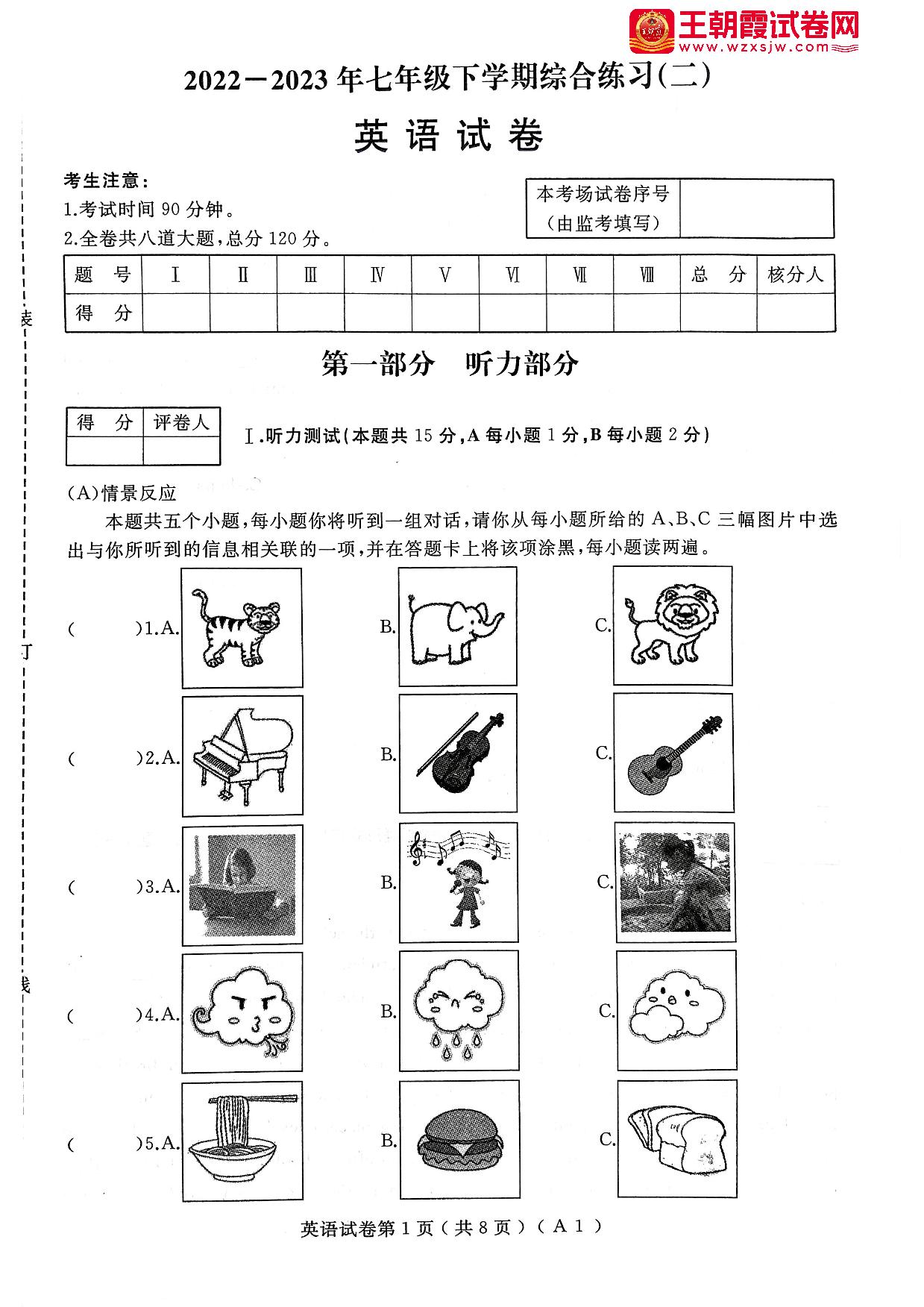 七年级英语人教版下册期末卷