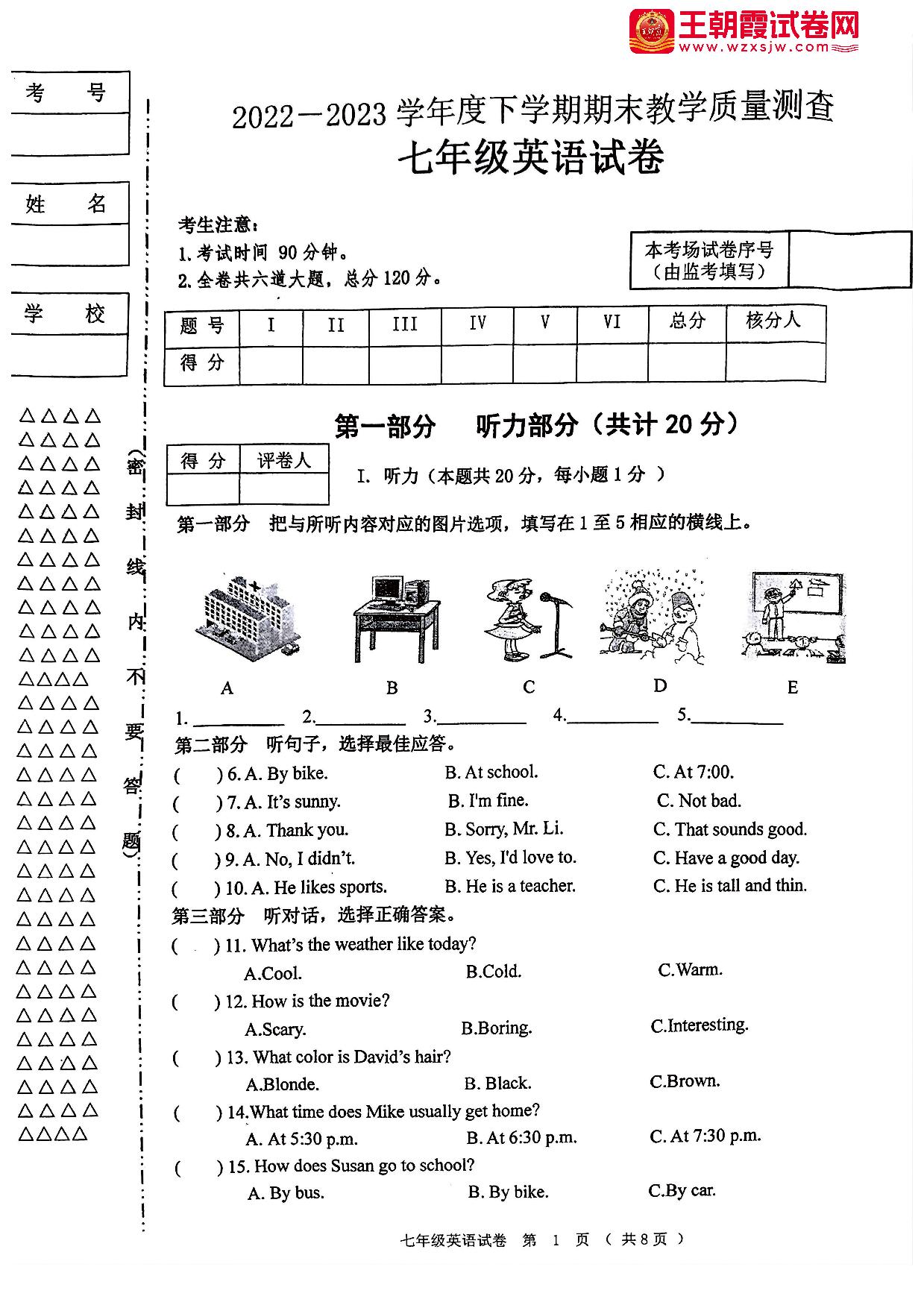 黑龙江省齐齐哈尔市龙江县2022-2023学年度下学期期末教学质量测查七年级英语(人教版)【五四制】