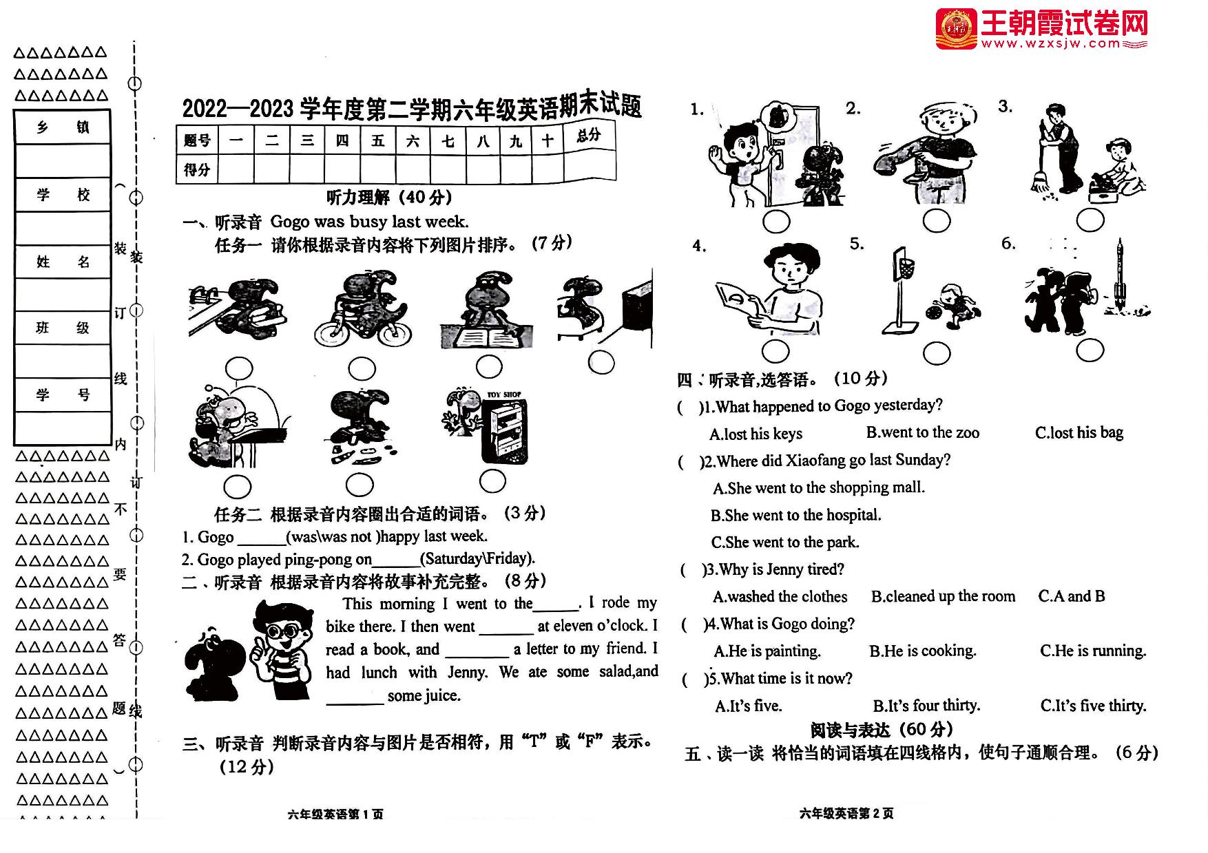 六年级英语粤人版下册期末卷