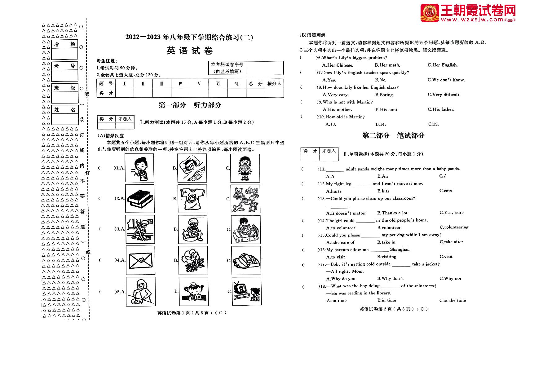 八年级英语人教版下册期末卷