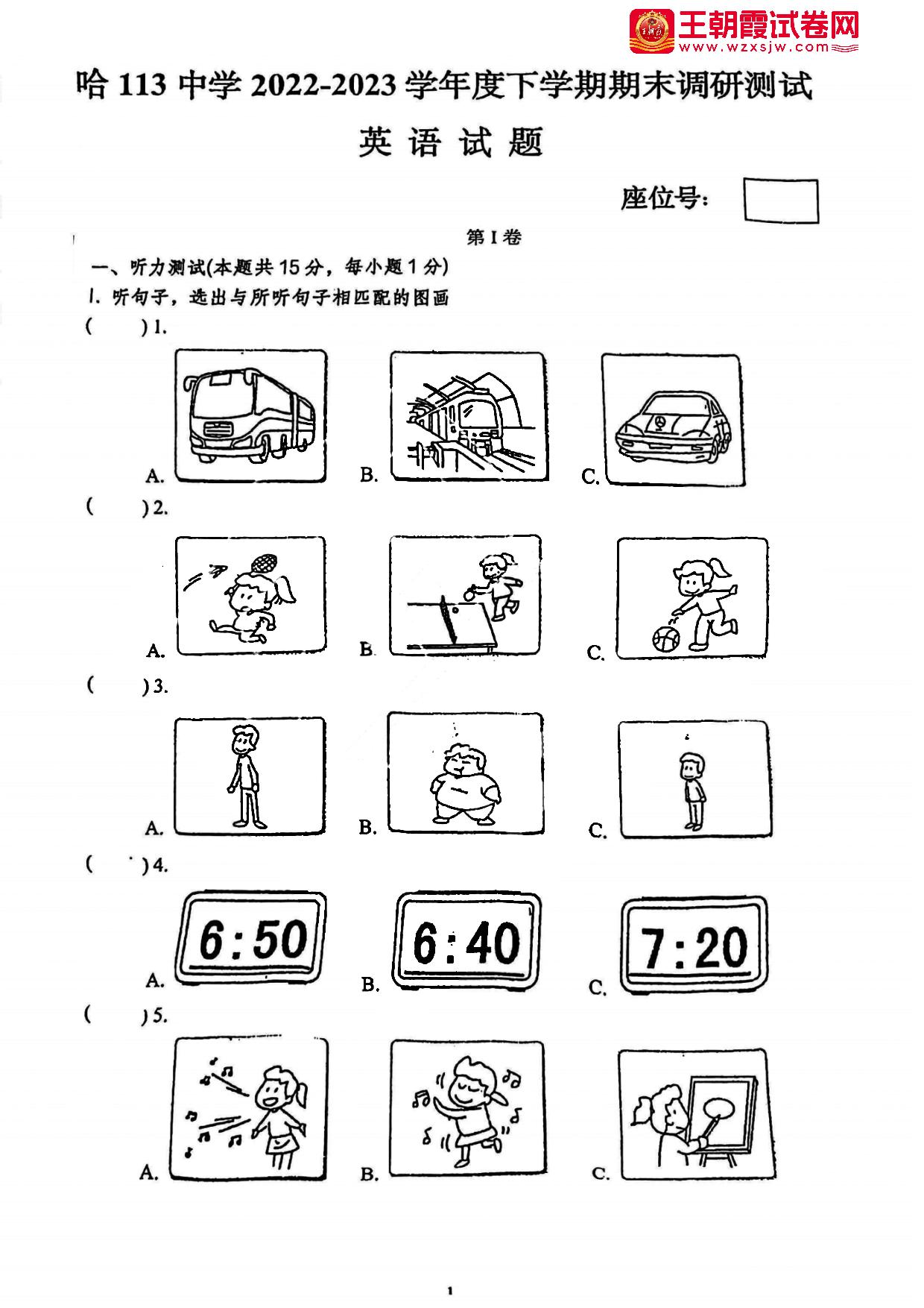 黑龙江省哈尔滨市道里区第113中学2022-2023学年度下学期期末调研测试七年级英语(人教版)【五四制】【无听力音频】
