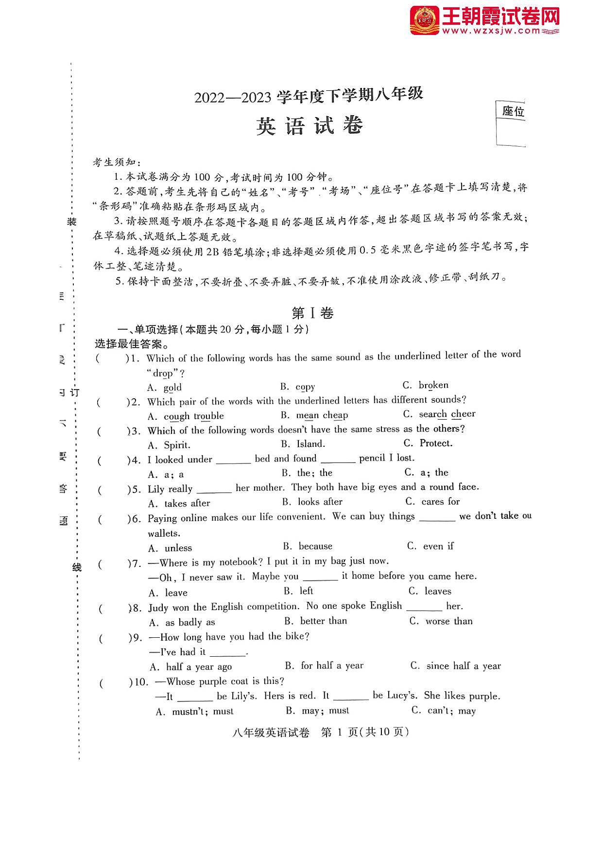 黑龙江省哈尔滨市南岗区2022-2023学年度下学期期末试卷八年级英语(人教版)【五四制】
