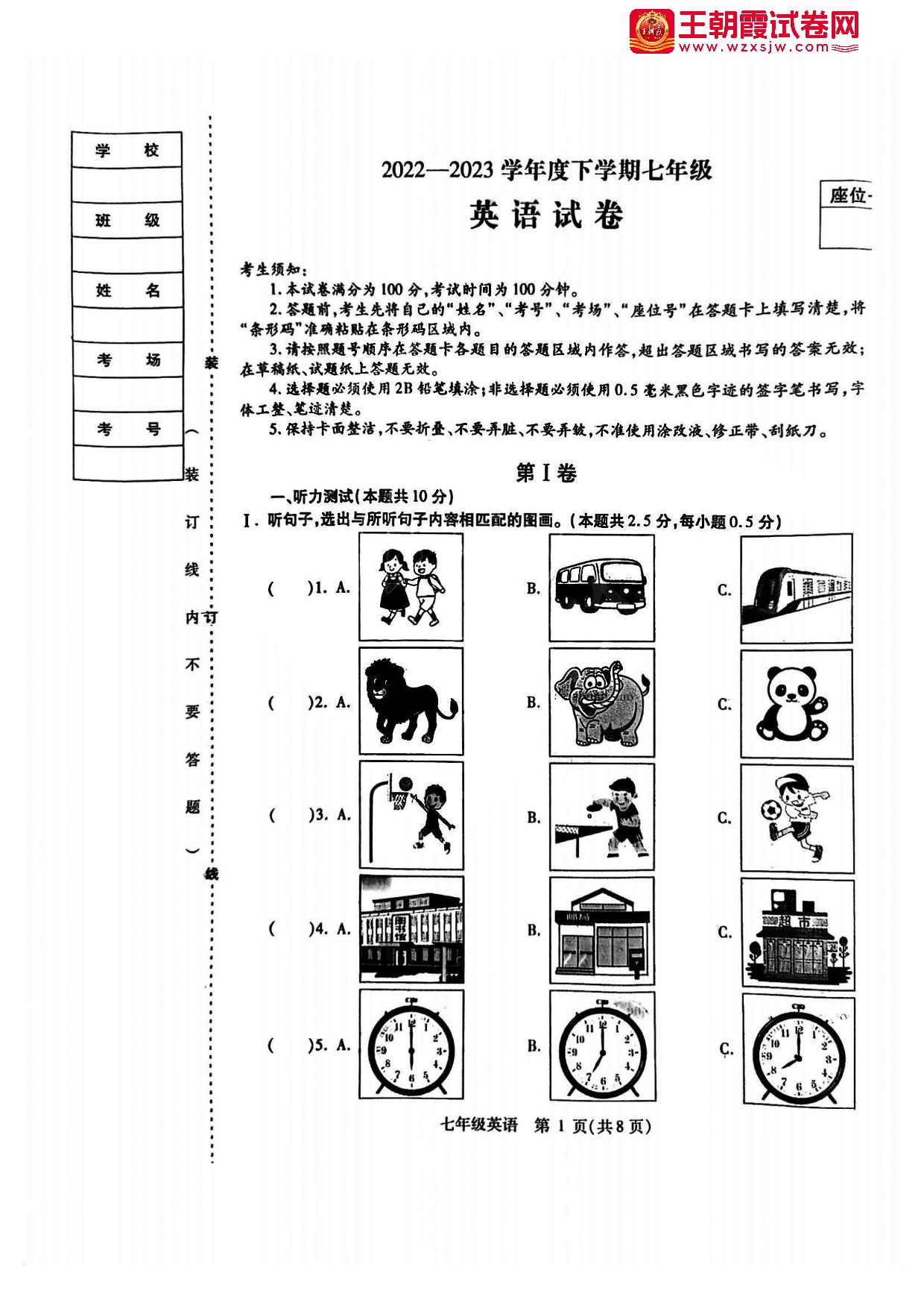 黑龙江省哈尔滨市南岗区2022-2023学年度下学期期末试卷七年级英语(人教版)【五四制】【无听力音频】