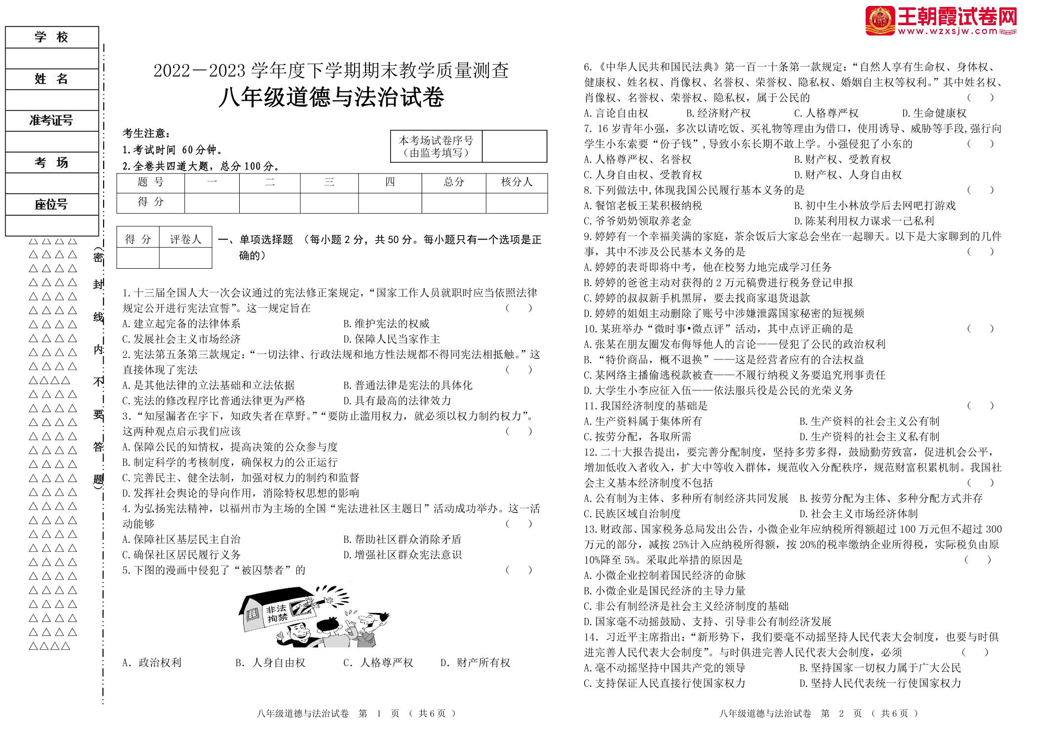 黑龙江省讷河市2022-2023学年下学期期末教学质量测查八年级道德与法治(人教版)