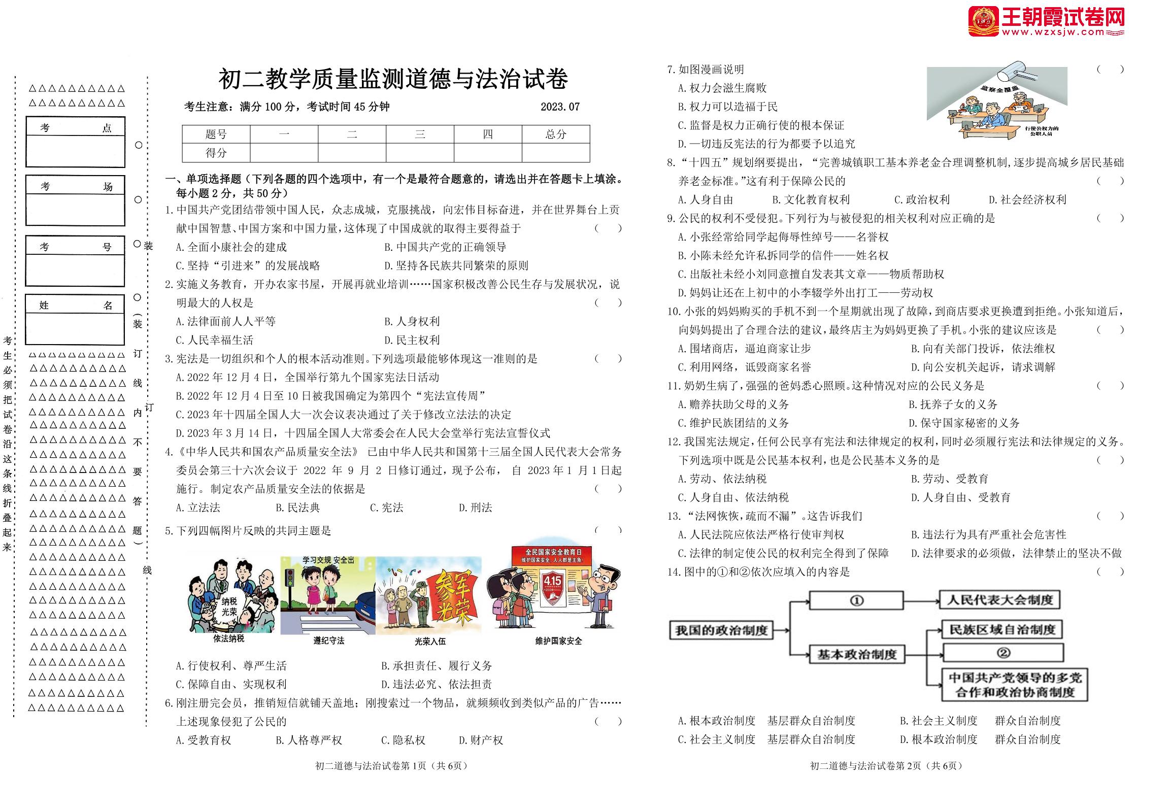 八年级道德与法治人教版下册期末卷